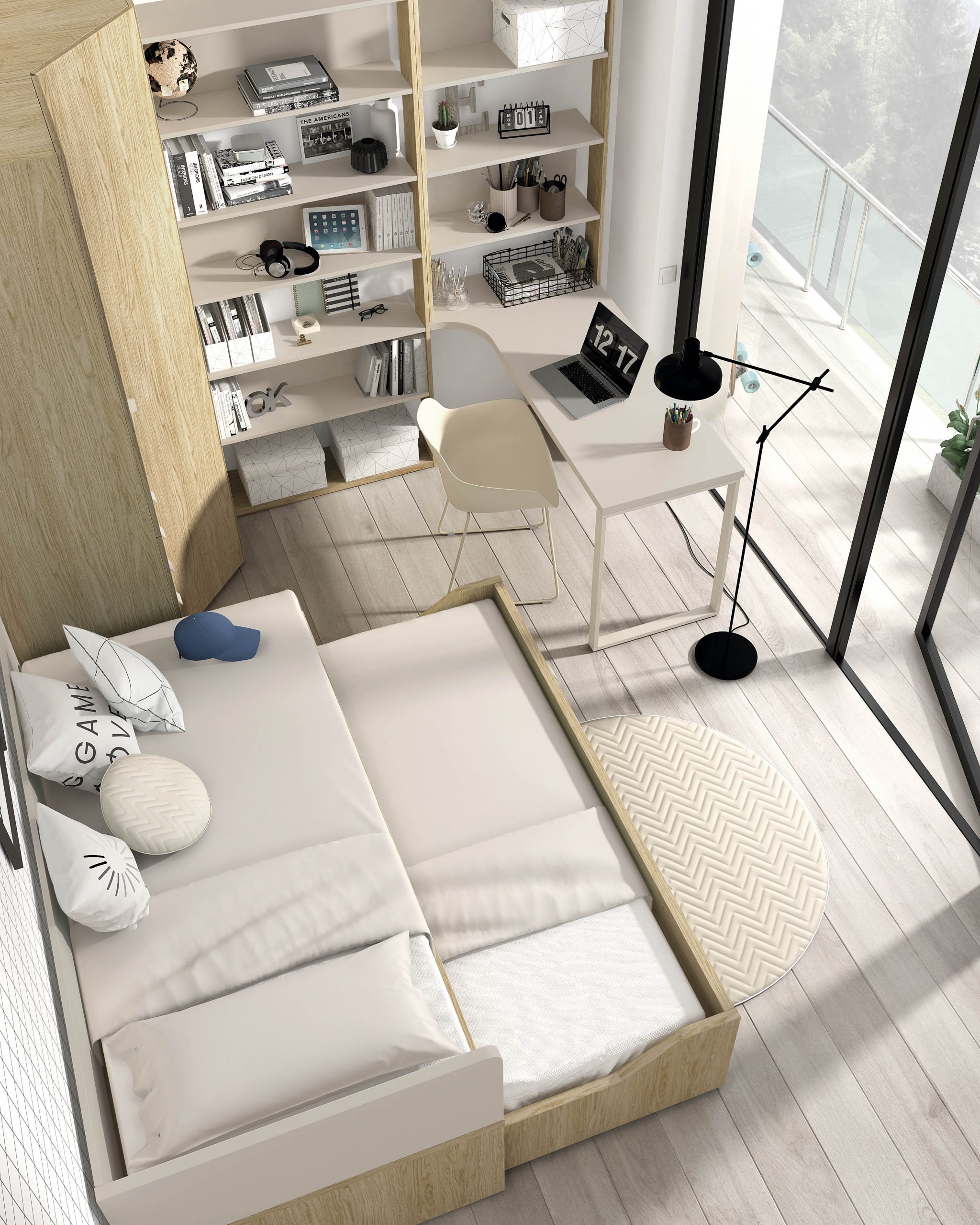 1 UNO compacta superior, cama deslizable y cajonera de 2 cajones de 16,4 190 x 90 + 180 x 90