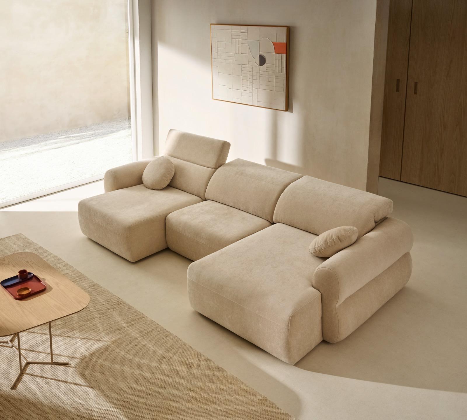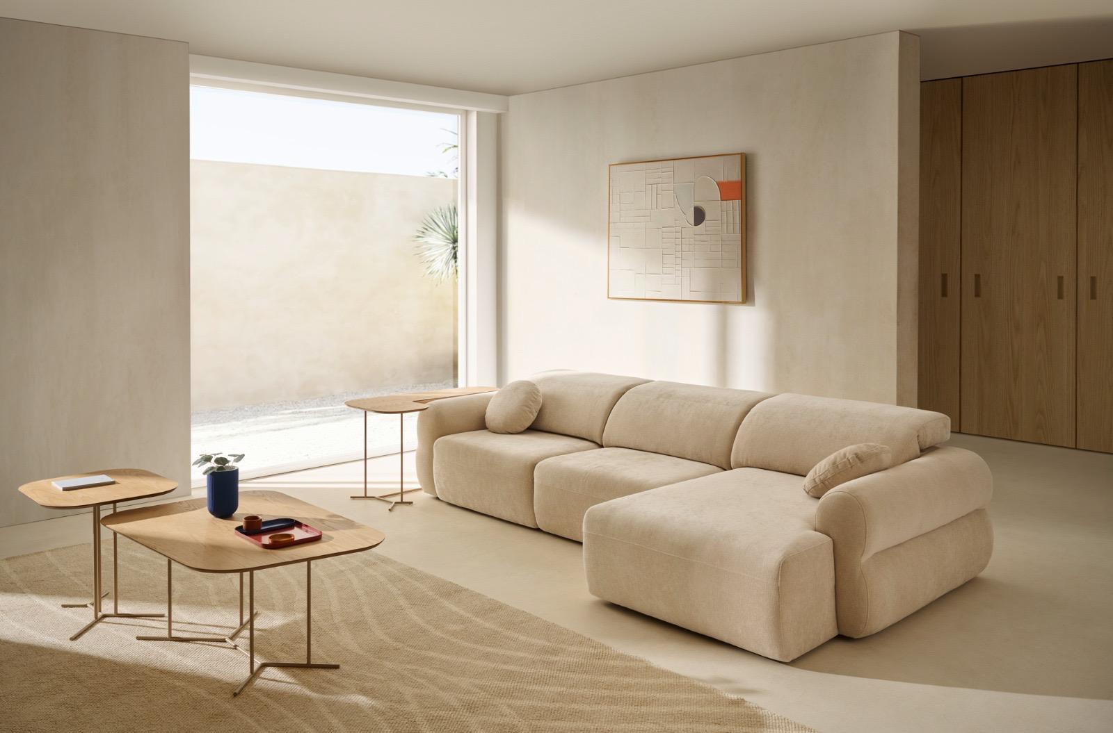 Sofa modular modelo CALMA con asientos deslizantes con carro con opción a manual o motorizados.