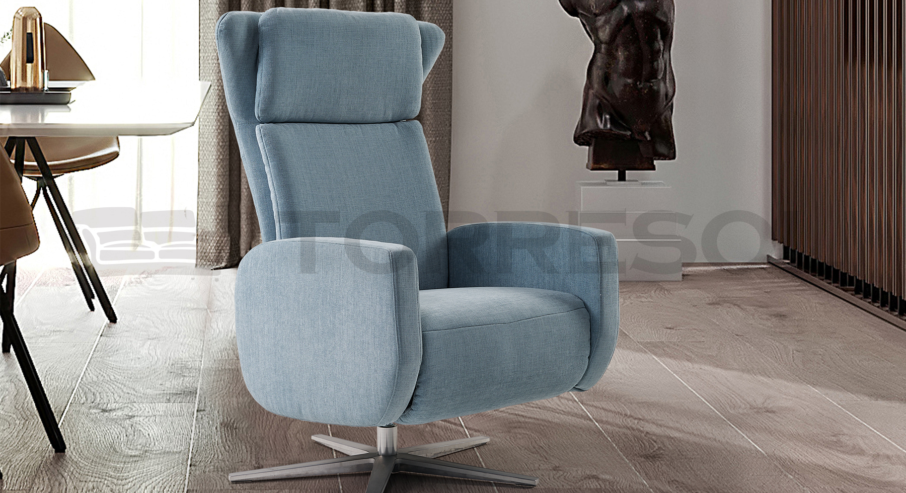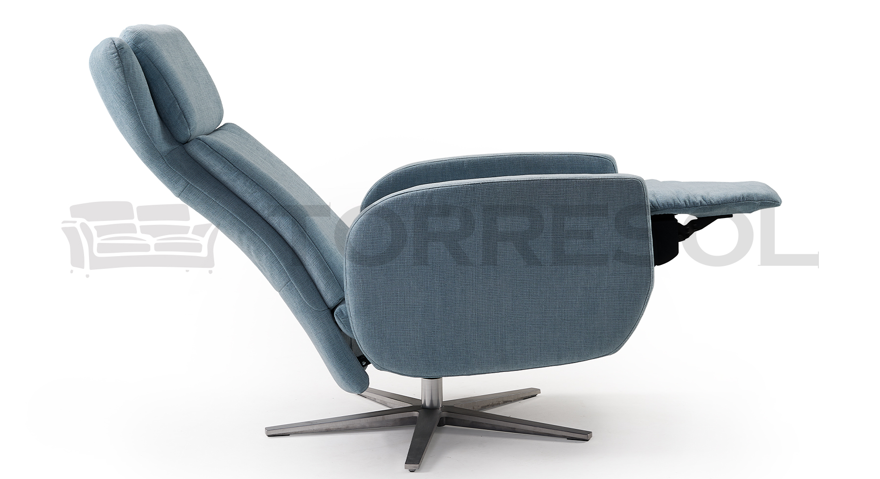 Armonioso diseño y equilibrada estética para este sillón relax que lleva mecanismo giratorio, cabezal regulable, Un modelo sencillamente acogedor y muy confortable.