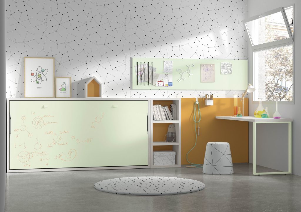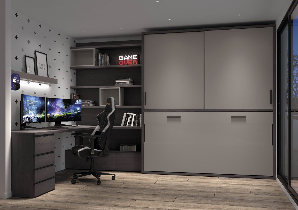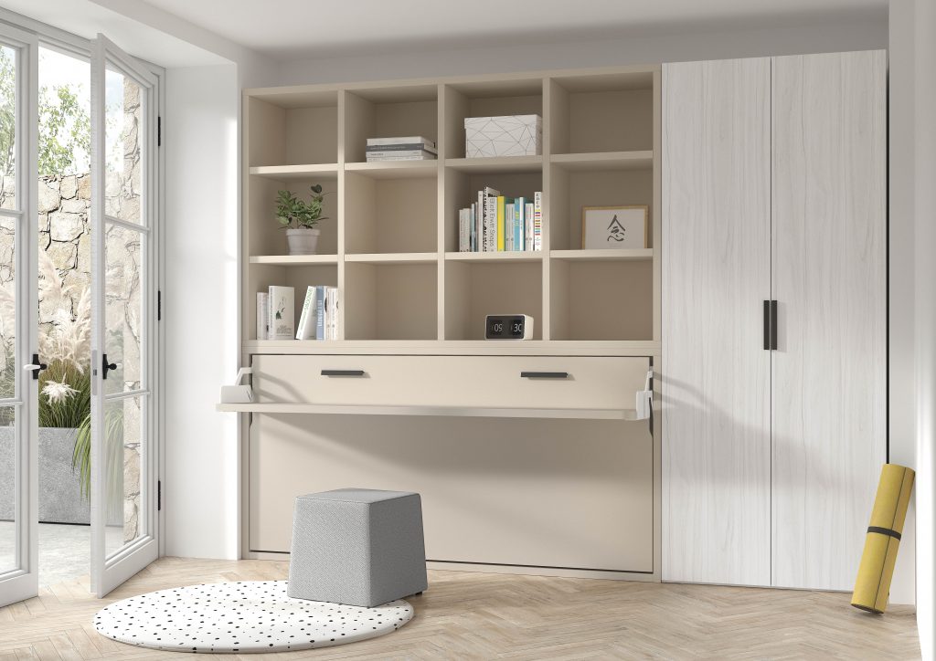 Las camas abatibles horizontales son ideales para habitaciones estrechas o con techos bajos, ya que su apertura lateral ocupa menos altura. Son perfectas para dormitorios juveniles, cuartos de invitados o estudios donde el espacio es limitado. Disponibles en varios acabados y con opciones de almacenaje, combinan practicidad, confort y diseño para crear estancias más funcionales.