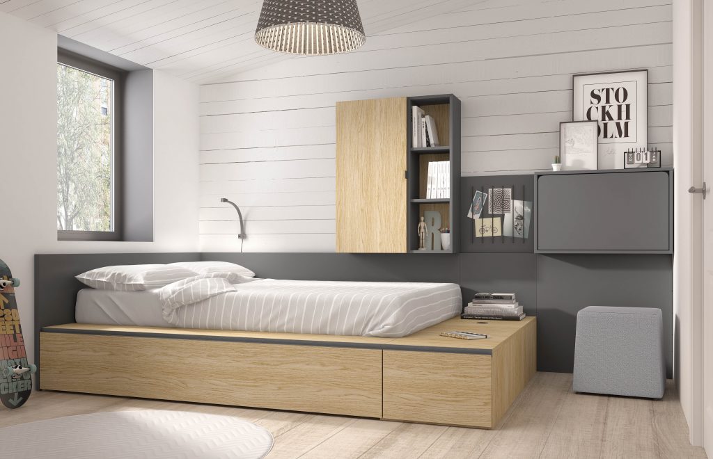 Las camas block son perfectas para habitaciones juveniles y espacios pequeños. Combinan cama, cajones y módulos de almacenaje en una sola estructura, ayudando a mantener el orden sin ocupar espacio extra. Muchos modelos incluyen escritorio o estanterías integradas para crear un conjunto práctico y funcional. Son una solución versátil, resistente y con diseño actual para aprovechar al máximo cada rincón del dormitorio.