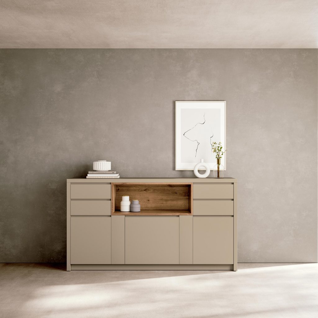 Los aparadores son muebles versátiles que combinan almacenaje y decoración. Son ideales para el salón o el comedor, ya que permiten guardar vajilla, manteles y otros objetos, manteniendo el espacio ordenado. Disponemos de aparadores con puertas, cajones o vitrinas en diferentes acabados para adaptarse a cualquier estilo. Cada diseño aporta funcionalidad y elegancia, convirtiéndose en una pieza clave para completar la decoración de tu hogar.
