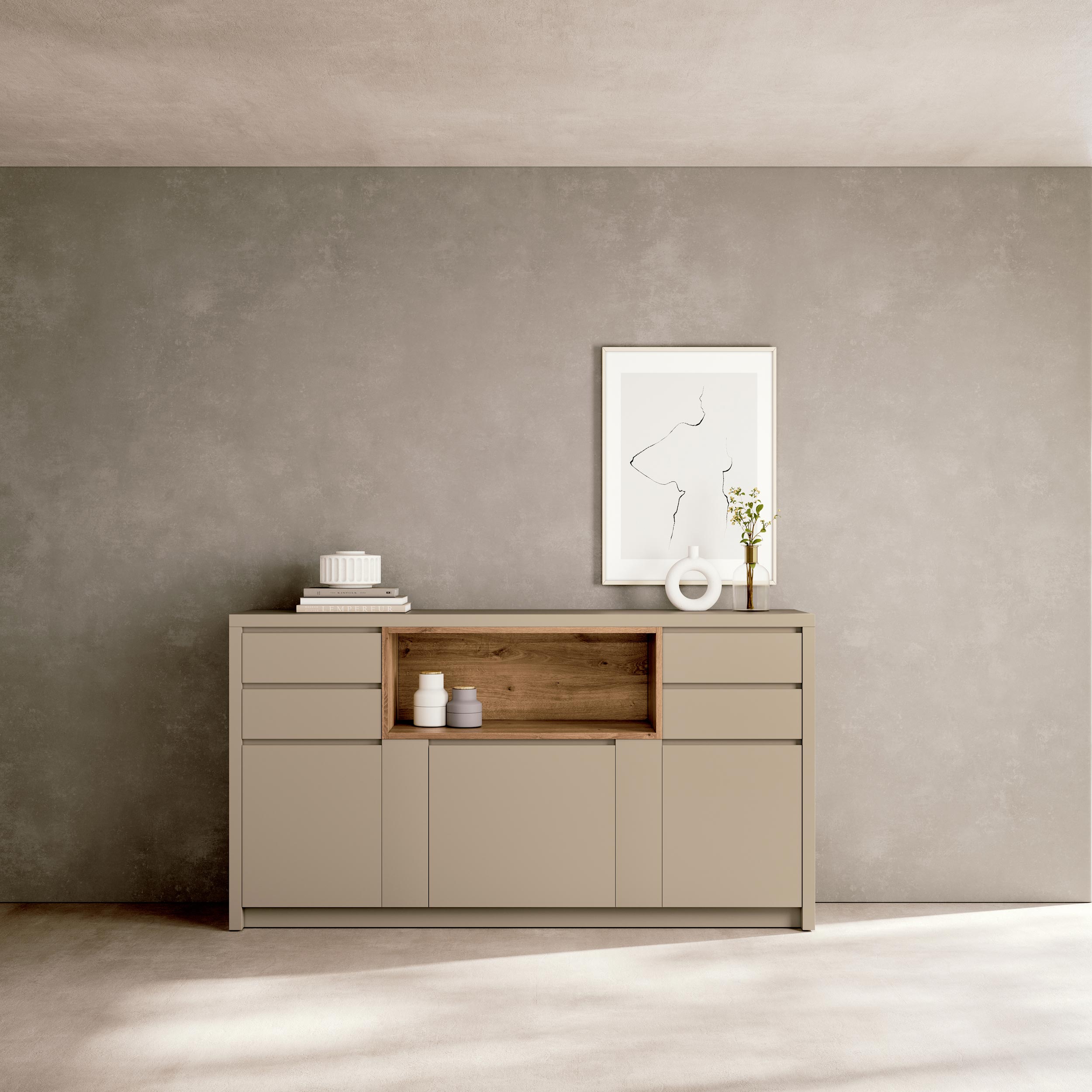 Diseño elegante y funcional, con estantes para exhibir objetos decorativos combinando estética y practicidad en un solo mueble.