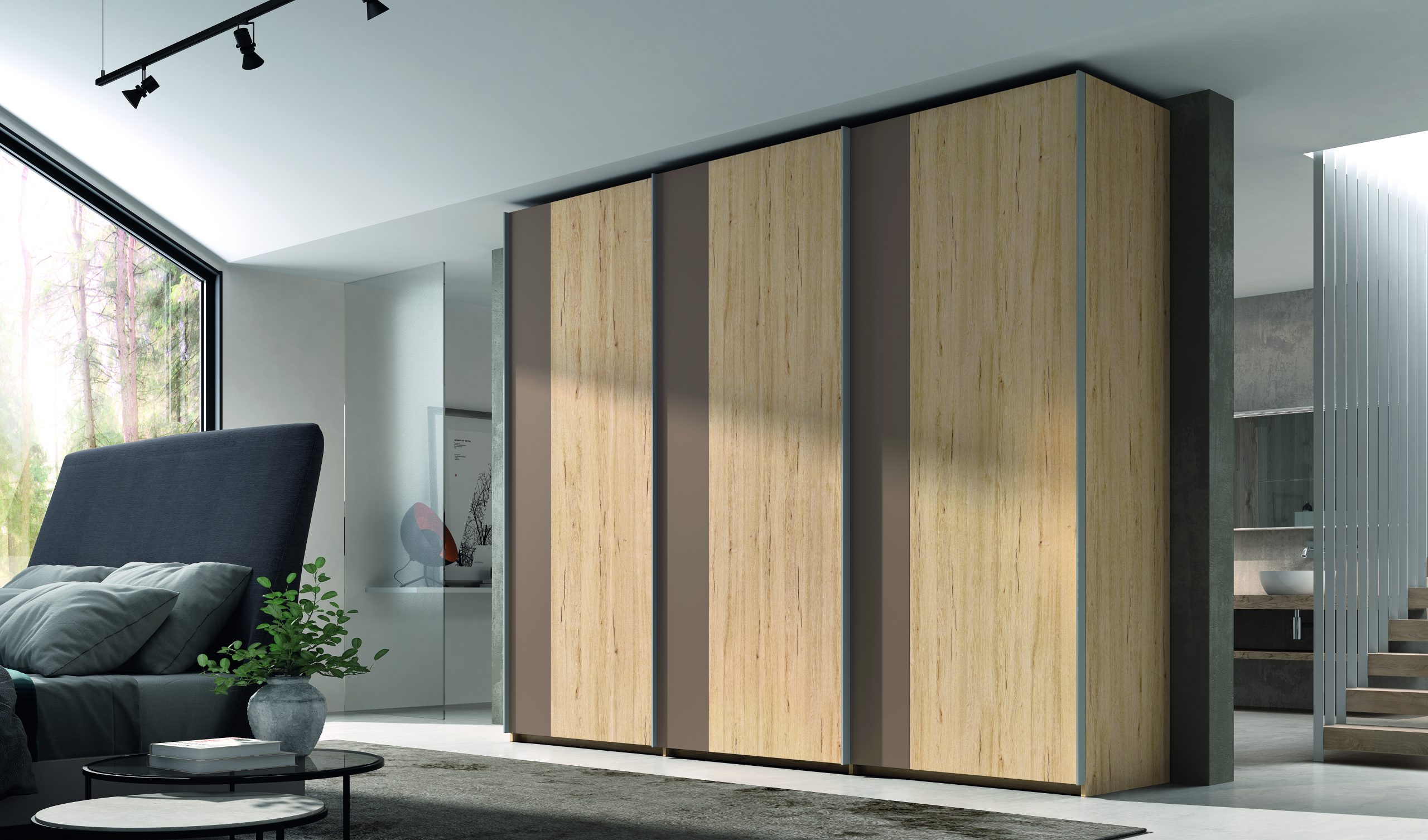 1- Armario 3 puertas correderas colgadas estándar franja vertical 296,2 x 240 Incremento unitario por puerta panel 1 lacado.