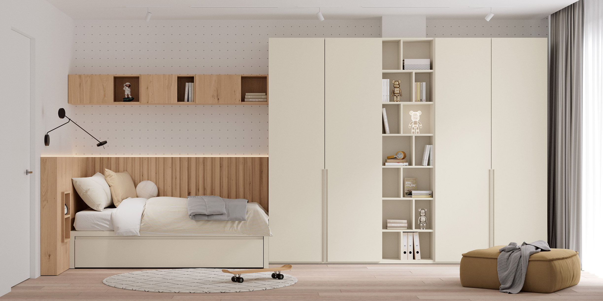 aporta al dormitorio amplitud, ya que ofrece espacio entre