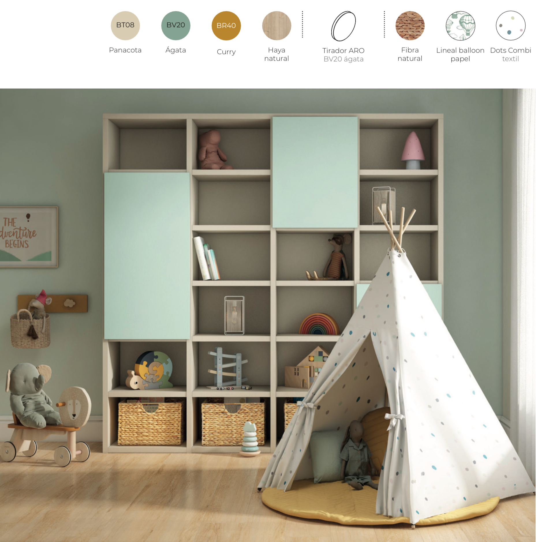 La Composición 15 Ros es un conjunto completo que combina diseño, funcionalidad y seguridad. Su acabado en panacota, ágata, curry y haya natural, junto con el tirador Aro, aporta calidez y modernidad al dormitorio infantil. Además, sus tonos permiten integrarla fácilmente en diferentes estilos decorativos.