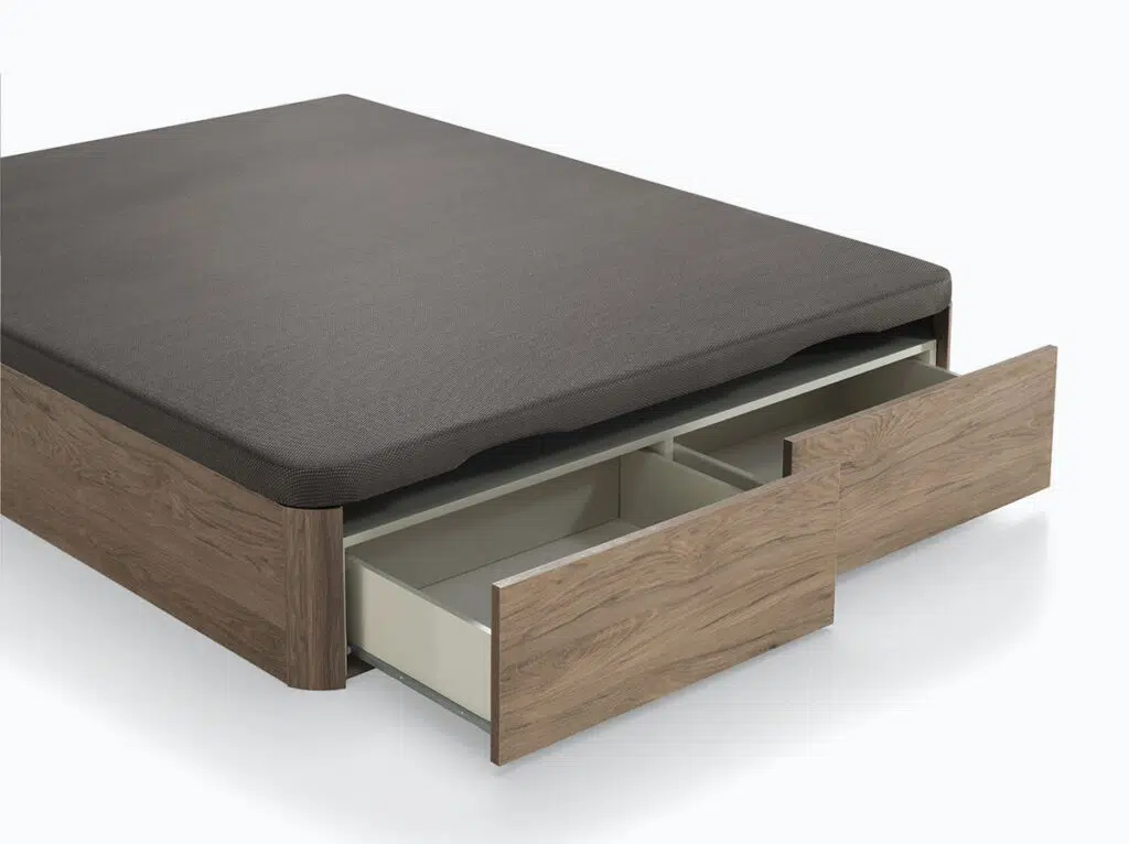 El canapé abatible modelo Ukelele con cajones de Ecus combina capacidad máxima, diseño moderno y funcionalidad superior. Su estructura sólida, apoyada directamente al suelo y sin patas, aprovecha todo el espacio disponible, ofreciendo una solución práctica y estética para el dormitorio.