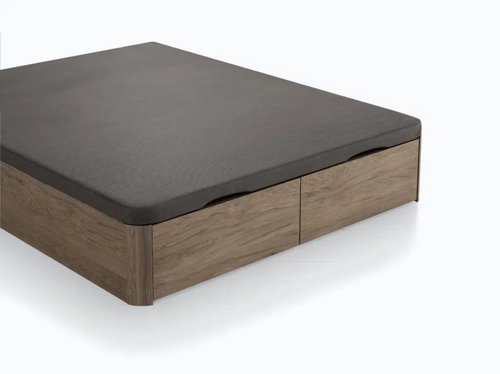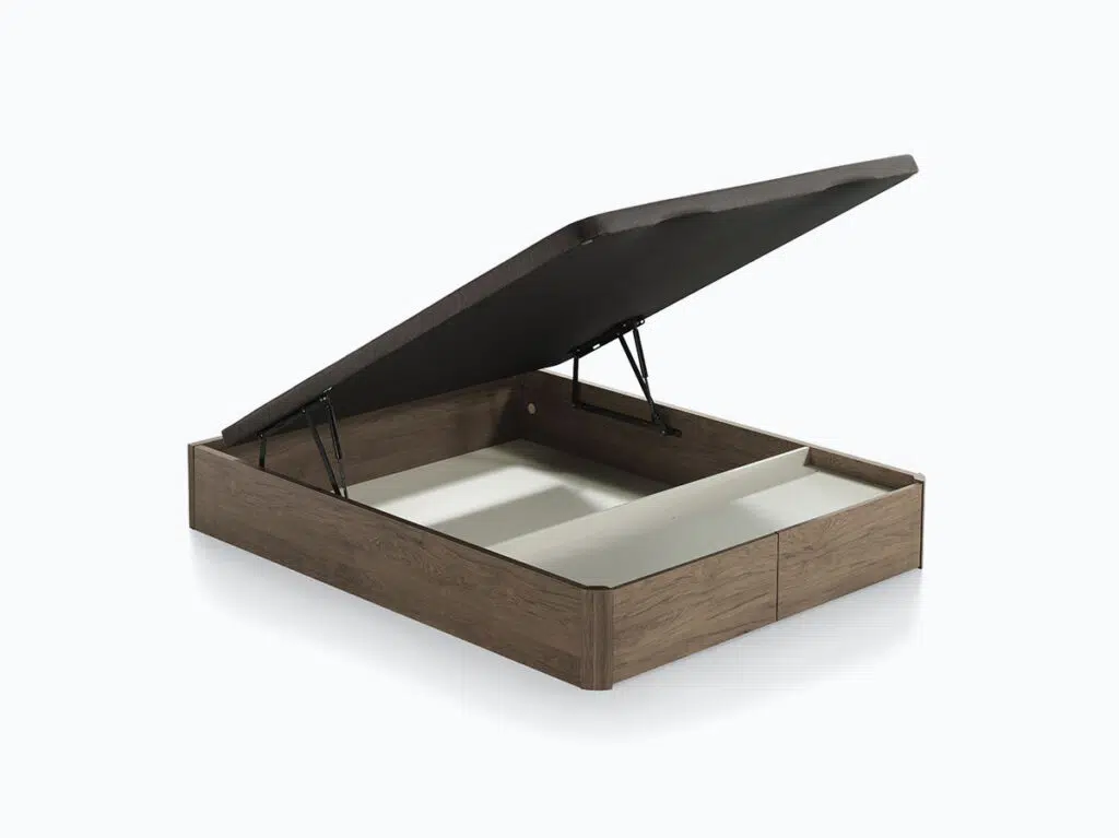 Por otro lado, la tapa tapizada en tejido 3D antideslizante y transpirable evita el desplazamiento del colchón durante el uso, tanto al abrir los cajones como al levantar el cofre. La tapa está fabricada con tecnología Fiberthon, una estructura interior de acero reforzada con cinco barras transversales que aportan firmeza, durabilidad y un soporte uniforme.