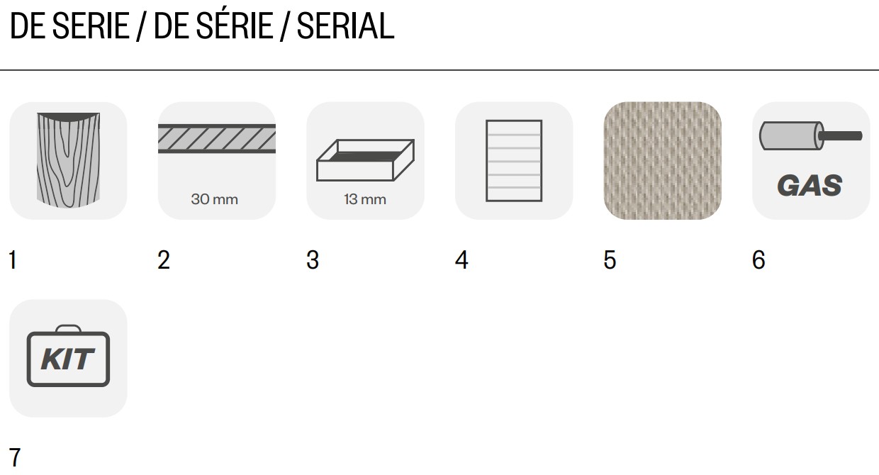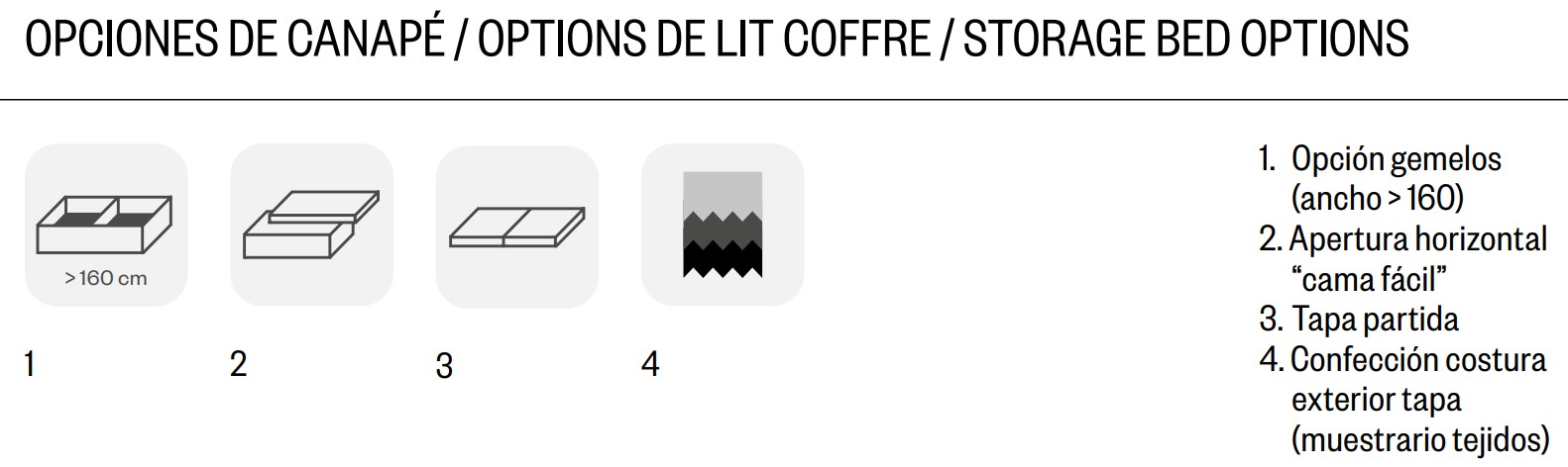 Las bisagras con pistones de gas, disponibles en distintas potencias, aseguran una apertura suave y segura. Además, el canapé Waterlilly se entrega en formato kit, facilitando su transporte y montaje.