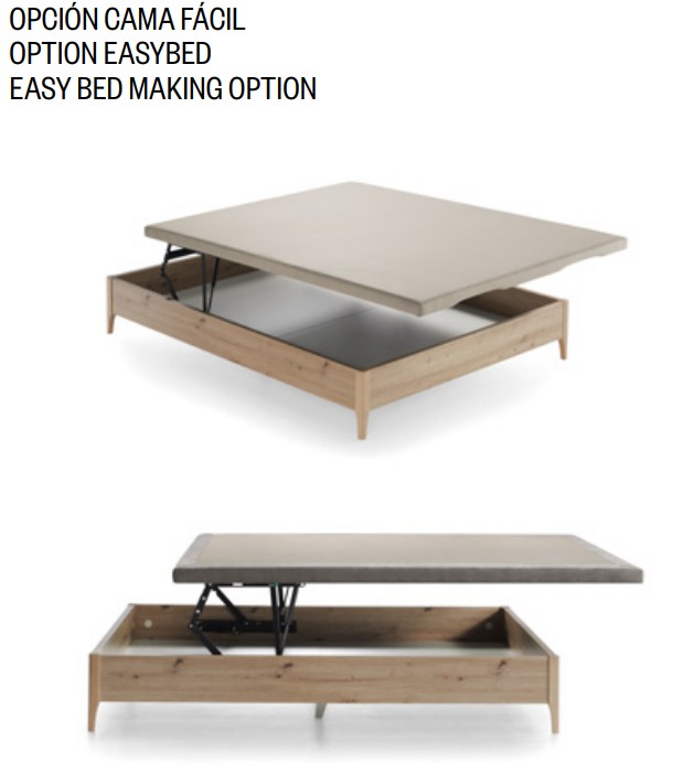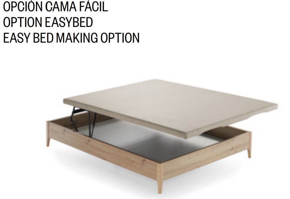 El canapé abatible modelo Waterlilly de Ecus combina ligereza visual, diseño elegante y funcionalidad oculta. Su estructura elevada sobre patas de madera transforma este canapé en una verdadera cama, aportando un aire moderno y natural al dormitorio sin renunciar al espacio de almacenaje.