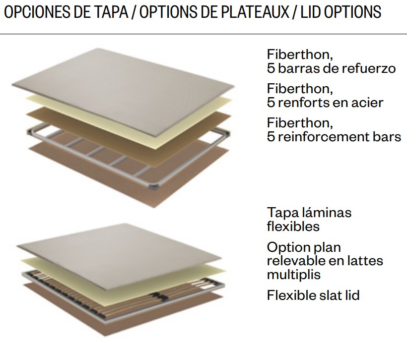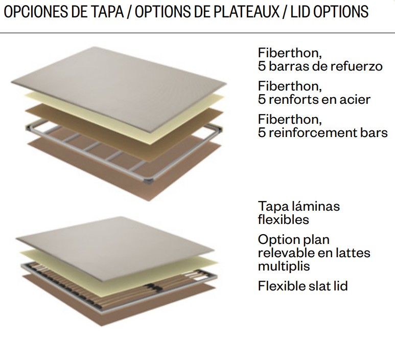 Tapa con láminas flexibles, que aporta mayor adaptabilidad.