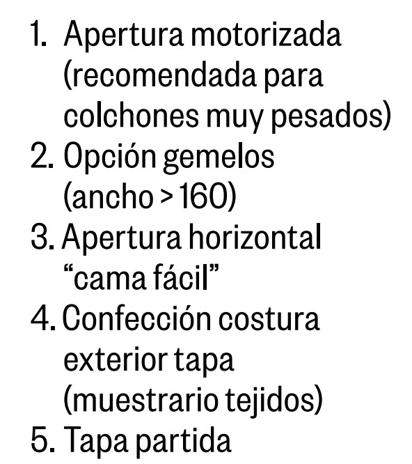 Por otro lado, la tapa Fiberthon con estructura interior de acero y cinco barras transversales de refuerzo garantiza una base firme y estable para el colchón. El tejido 3D antideslizante y transpirable evita el desplazamiento y mejora la ventilación, asegurando un descanso más fresco y saludable.