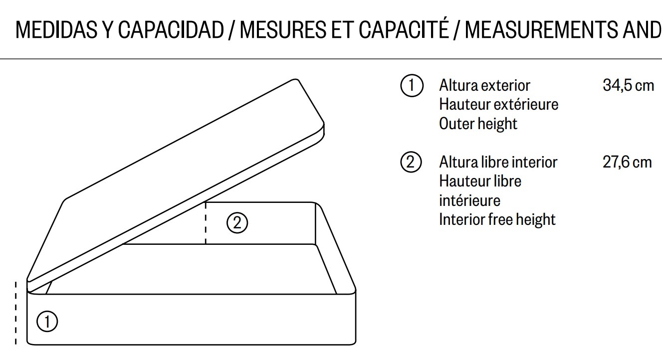 Por un lado, su estructura sólida en madera natural aporta resistencia y estabilidad. Las patas macizas curvas en las cuatro esquinas dan al conjunto un aspecto armonioso y refinado, además de facilitar la limpieza. Con una altura exterior de 34,5 cm y una capacidad útil interior de 27,6 cm, este canapé ofrece un amplio espacio de almacenaje que aprovecha al máximo cada centímetro.