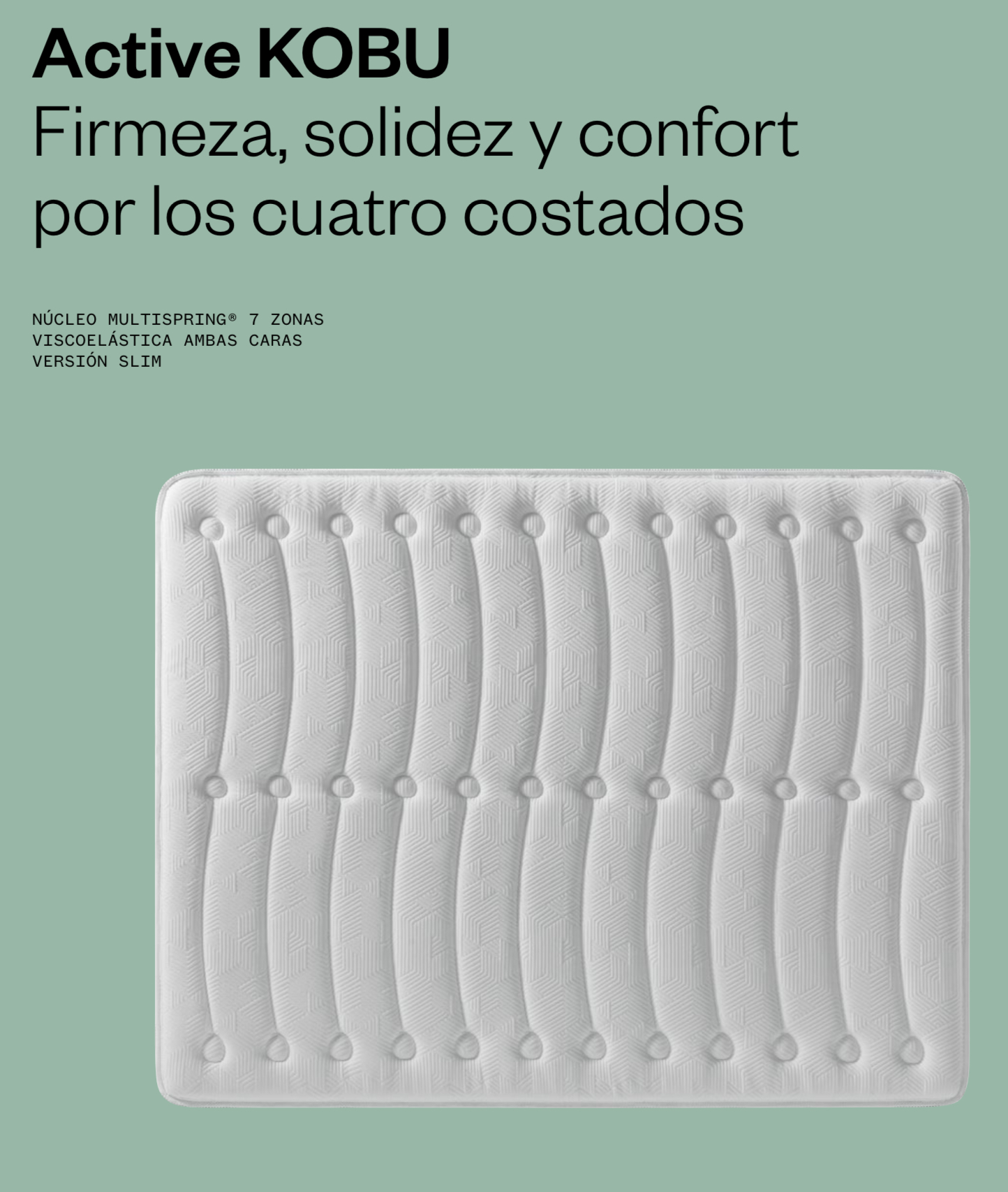El colchón Kobu Ecus representa la unión perfecta entre firmeza, estabilidad y confort. Su diseño está pensado para quienes buscan un descanso sólido, pero con una acogida agradable que mejora la experiencia de sueño.
