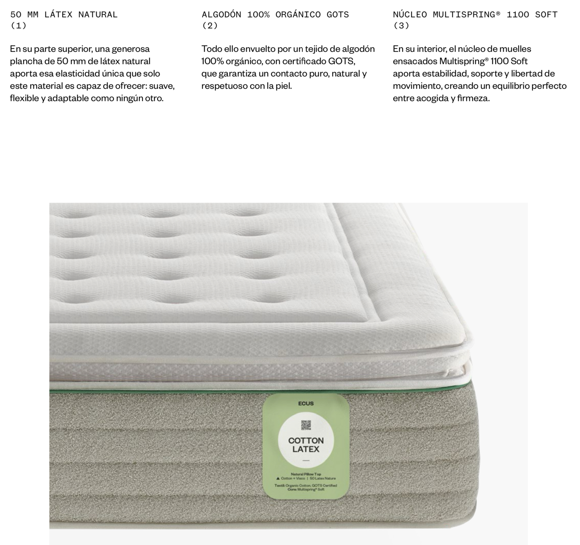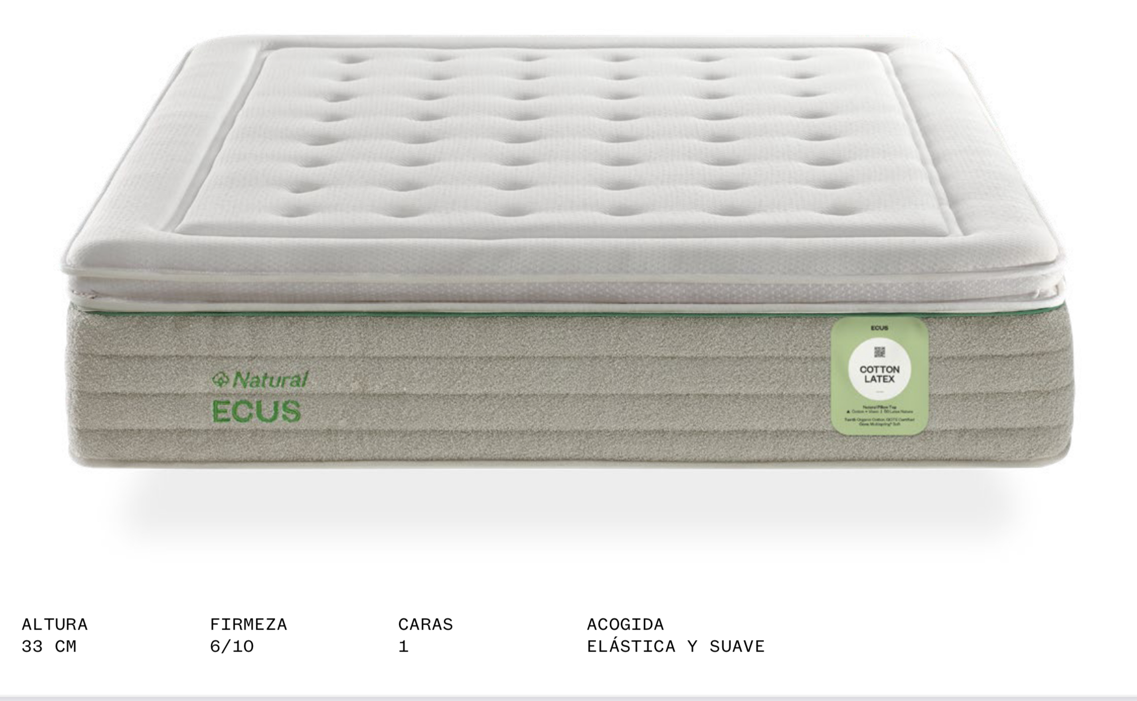El colchón Cotton Látex de Ecus reúne lo mejor de la naturaleza con la experiencia de años en innovación del descanso. El resultado es un colchón que ofrece un sueño profundo, natural y envolvente, de esos que, una vez los pruebas, ya no quieres cambiar.