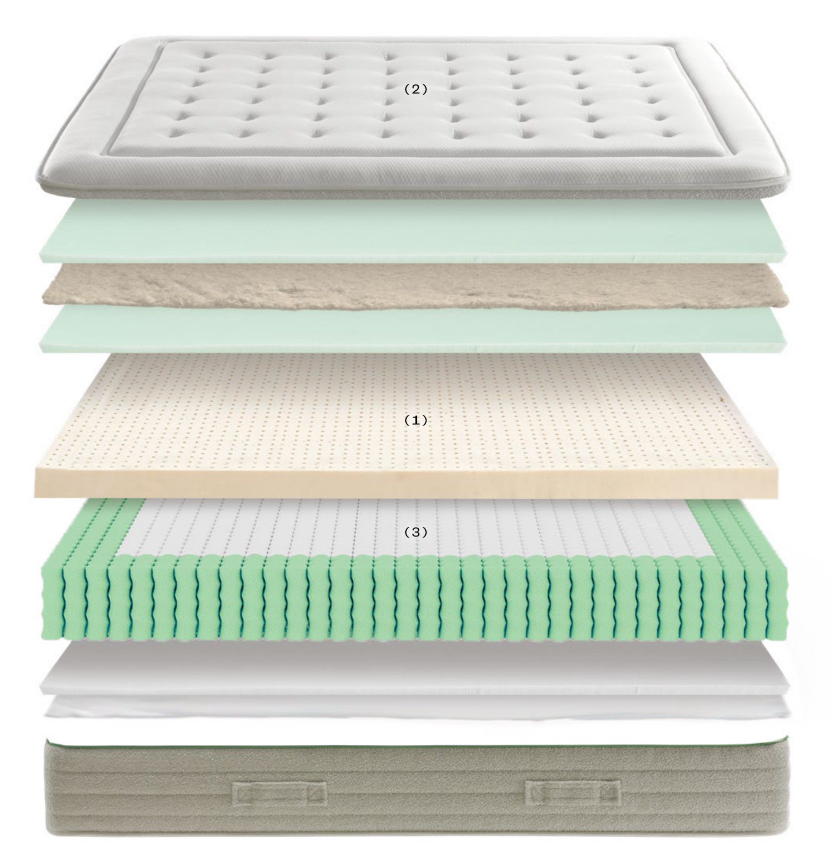 En su parte superior incorpora una plancha de 50 mm de látex 100 % natural, un material que destaca por su elasticidad y capacidad de adaptarse al cuerpo sin generar presión. Esta capa proporciona suavidad, flexibilidad y un confort único, convirtiéndose en el corazón del descanso.
