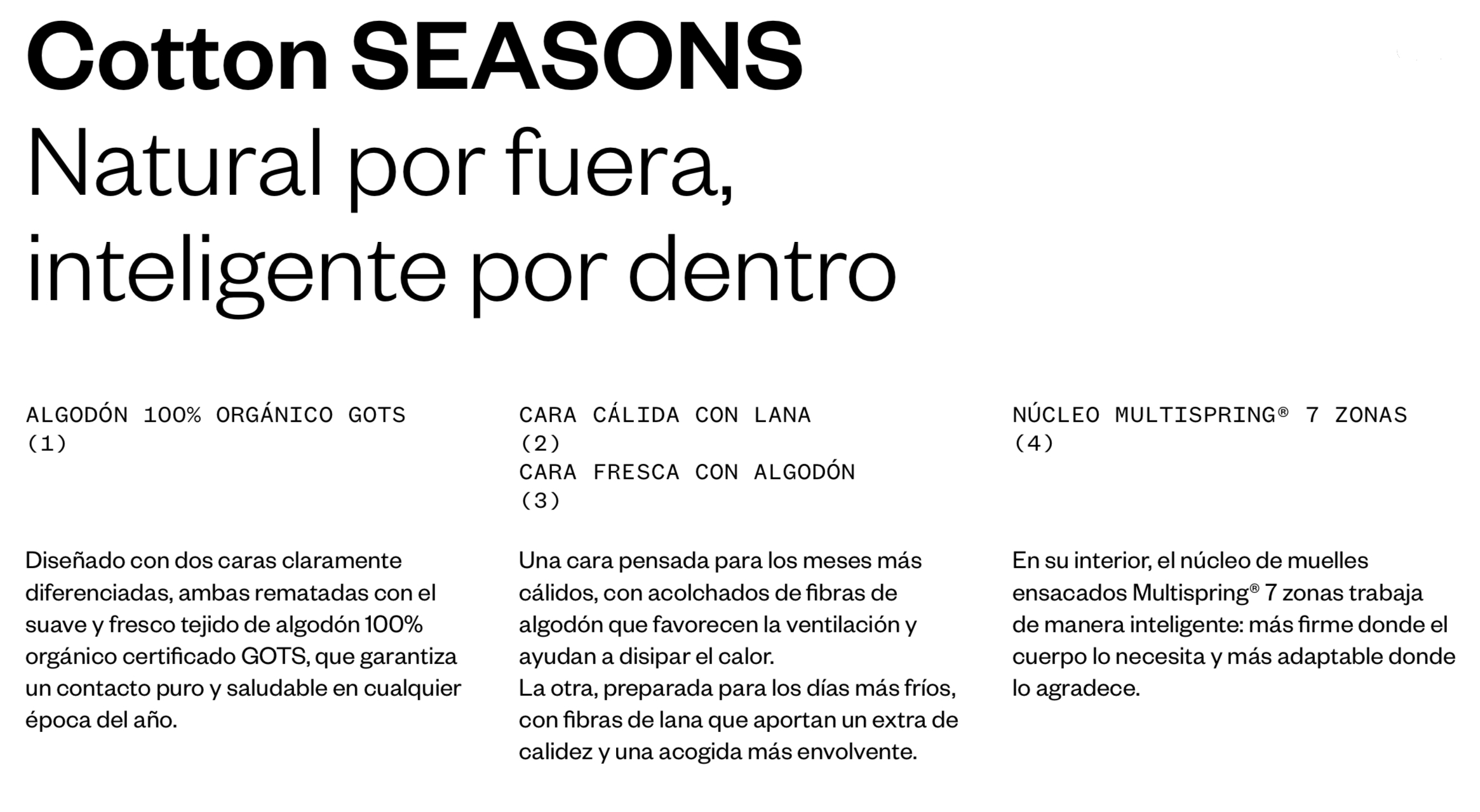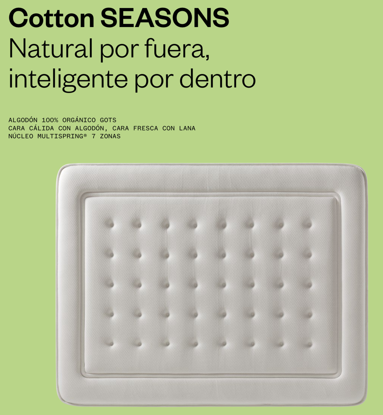 El colchón Seasons es ideal para quienes buscan un descanso natural, equilibrado y adaptado a cada estación del año.