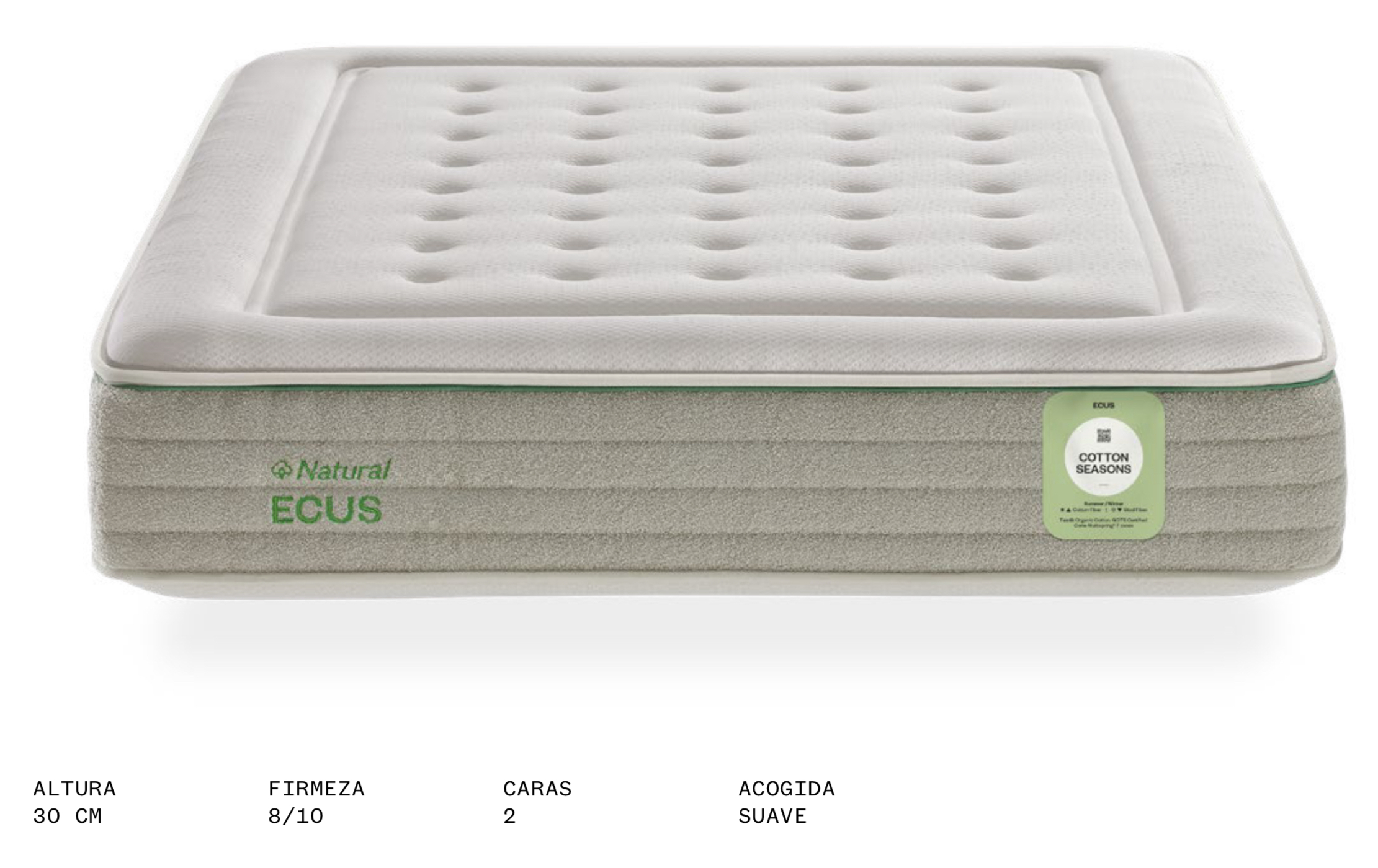 El colchón Seasons de Ecus se adapta al ritmo de las estaciones sin renunciar a lo esencial: naturalidad, transpirabilidad y confort. Es un modelo versátil que cambia contigo, ofreciendo una cara fresca para el verano y una cálida para el invierno, siempre con la garantía de un descanso saludable.