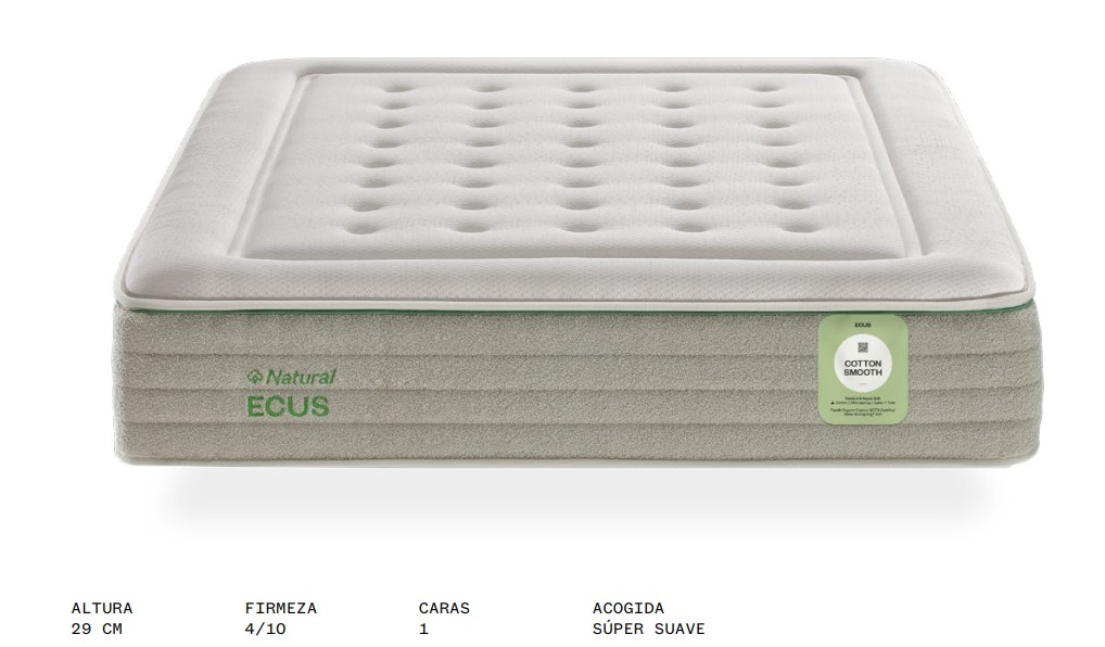 El colchón Cotton Smooth es la elección perfecta para quienes buscan suavidad extrema, ligereza y un descanso delicado pero con toda la tecnología de Ecus.