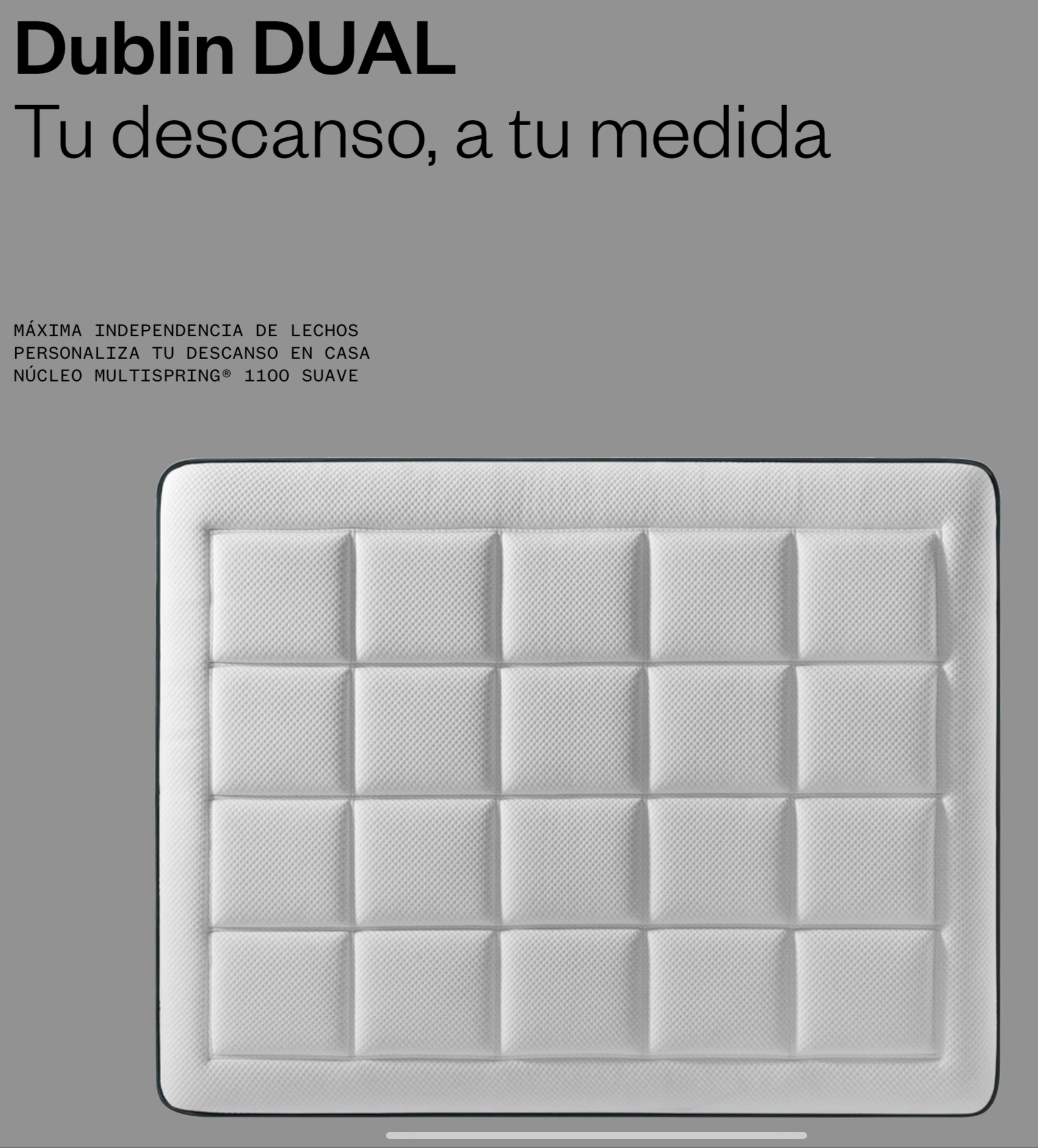 El colchón Dublín Dual es la solución perfecta para parejas que buscan un colchón versátil, cómodo y de alta calidad, con la posibilidad de personalizar su descanso cada noche.