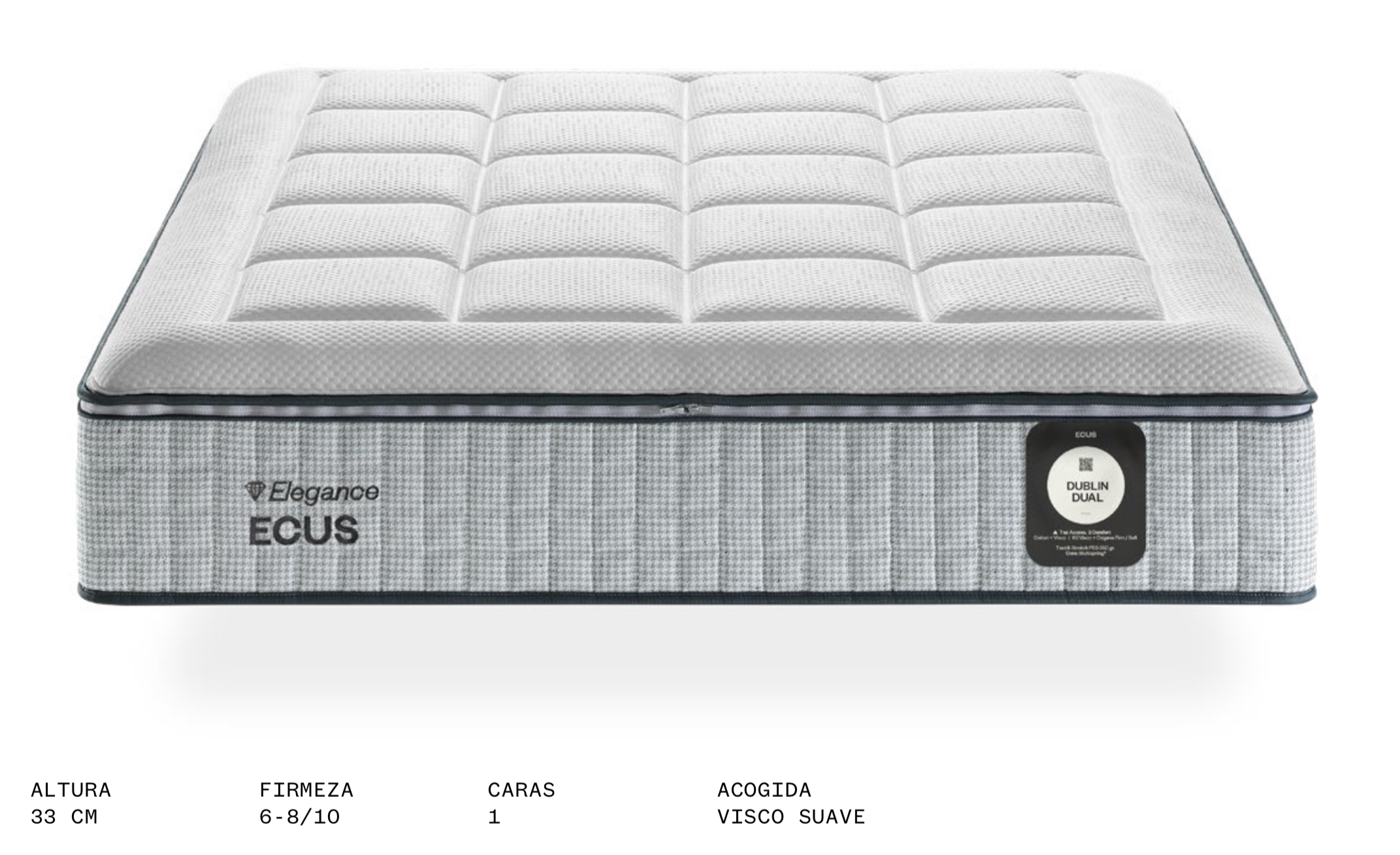 El colchón Dublín Dual de Ecus está pensado para parejas que desean compartir cama sin renunciar a su comodidad personal. Este innovador modelo permite elegir entre tres configuraciones de firmeza: soft, firme o dual (una parte soft y otra parte firme). Así, cada persona puede seleccionar el lado que mejor se adapta a sus necesidades, disfrutando de un descanso hecho a medida.
