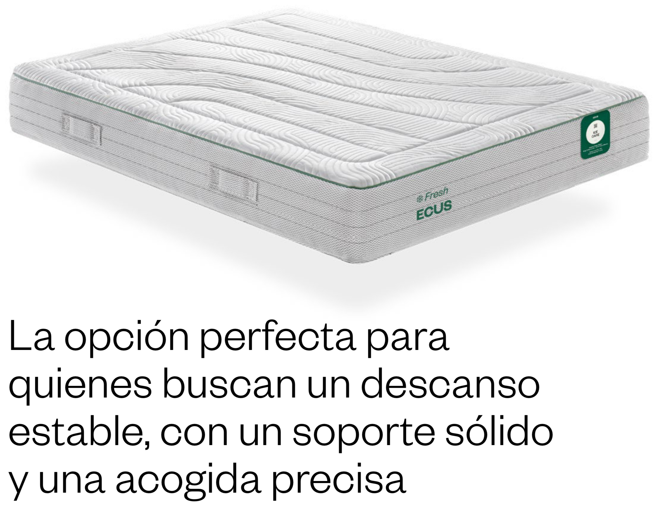 El colchón Ice Care Ecus está diseñado para quienes buscan equilibrio y versatilidad. Combina estabilidad, soporte sólido y una acogida precisa. Por eso, es una opción ideal para quienes quieren disfrutar de la frescura de la viscoelástica sin renunciar a la transpirabilidad ni al confort térmico.