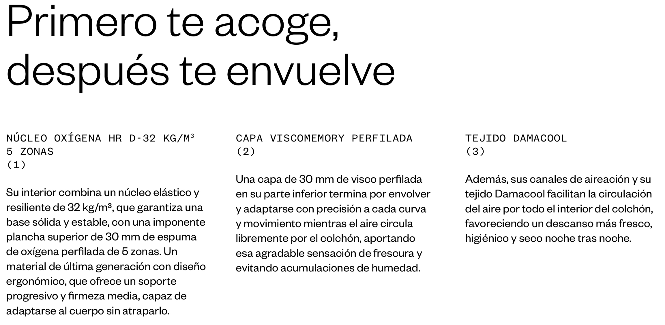 Núcleo Oxígena HR con 5 zonas de soporte anatómico.