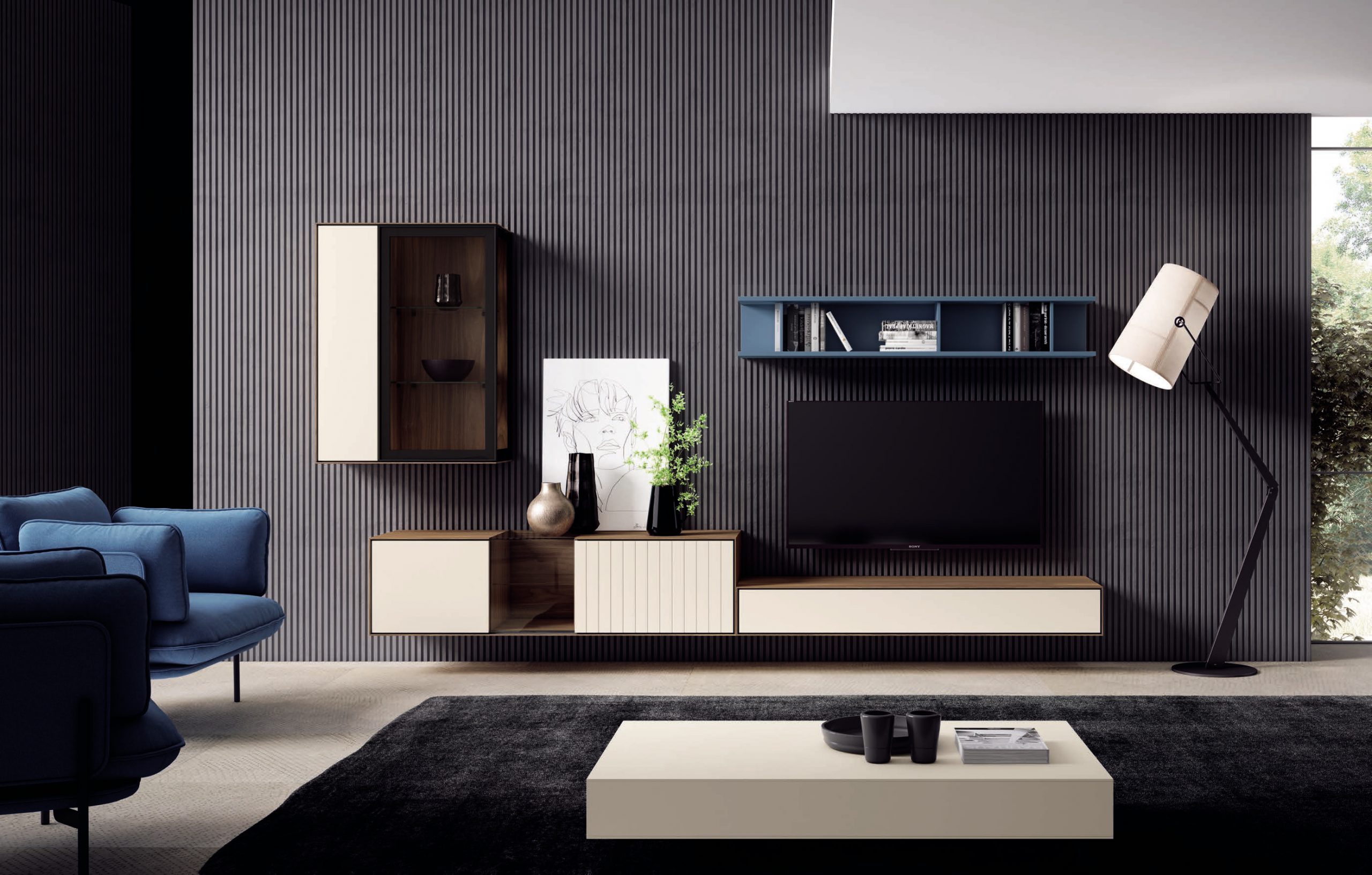 La composición de salón Loft Neo 23 destaca por su diseño moderno y equilibrado. Fabricada en acabados nogal y perla, combina elegancia, funcionalidad y estilo atemporal. Su estructura colgada de pared crea una sensación de amplitud y ligereza, ideal para salones contemporáneos que buscan estética y orden visual.