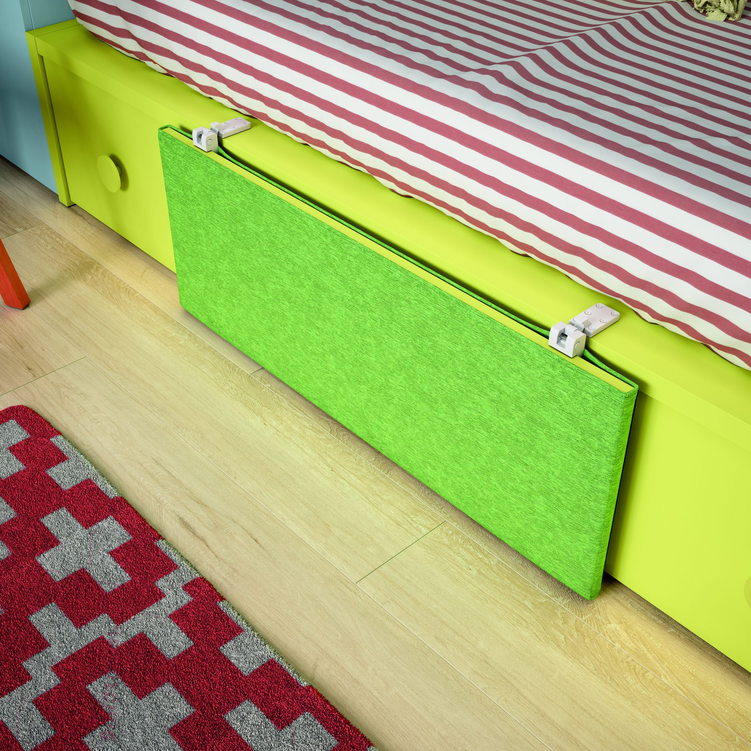 El dormitorio cuenta con una compacta de 190×90 cm con cuatro contenedores de 33,1 cm, que aporta gran capacidad de almacenaje sin ocupar espacio extra. Además, se incluye un quitamiedos tapizado recto, lo que garantiza seguridad y confort durante el descanso. De esta manera, se obtiene una cama juvenil funcional y práctica.