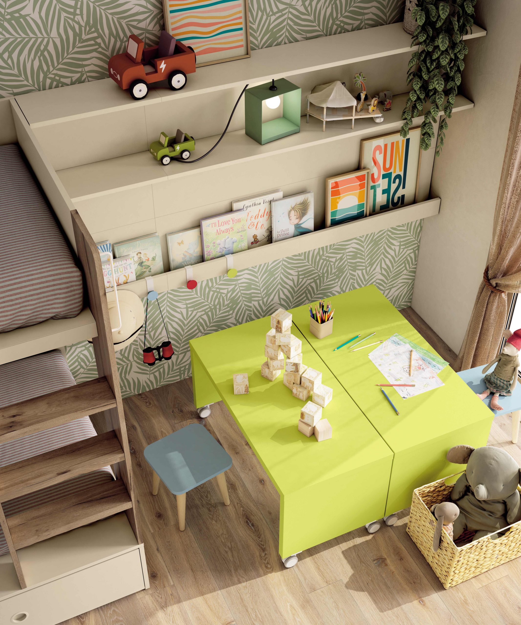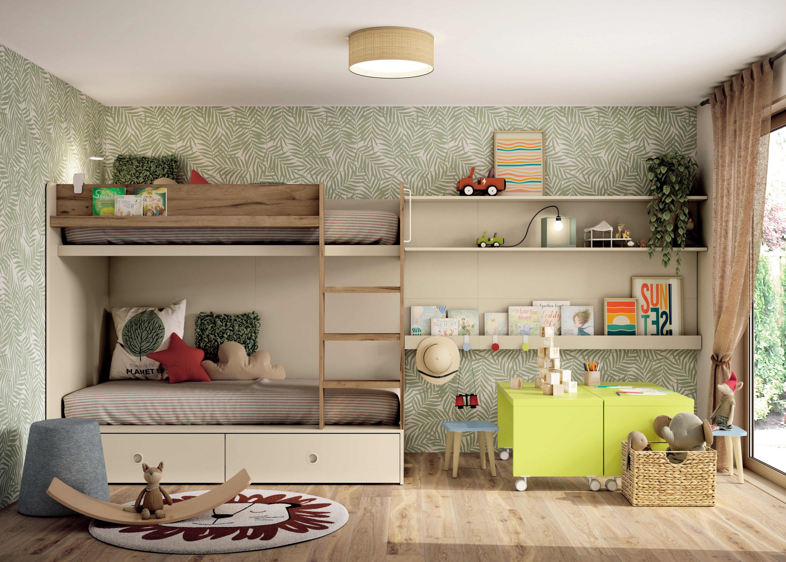 Por eso, este modelo es perfecto para habitaciones juveniles modernas que buscan aprovechar cada rincón. Además, la colección permite personalizar colores, medidas y distribución, adaptándose a las necesidades de cada hogar.