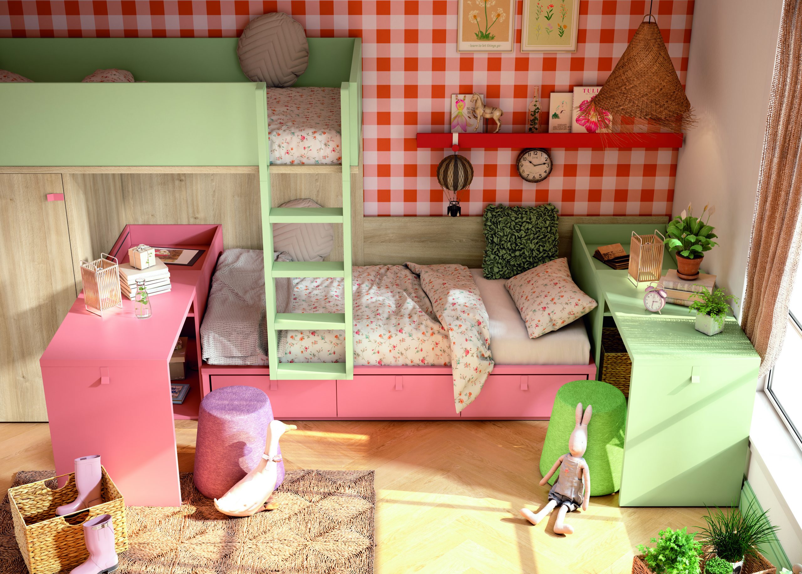 En conclusión, el dormitorio juvenil Ros Delulu 54 ofrece un diseño moderno, funcional y lleno de vida. Su estructura modular, los colores luminosos y los detalles en madera natural convierten este modelo en una opción perfecta para crear un ambiente juvenil confortable y atractivo.