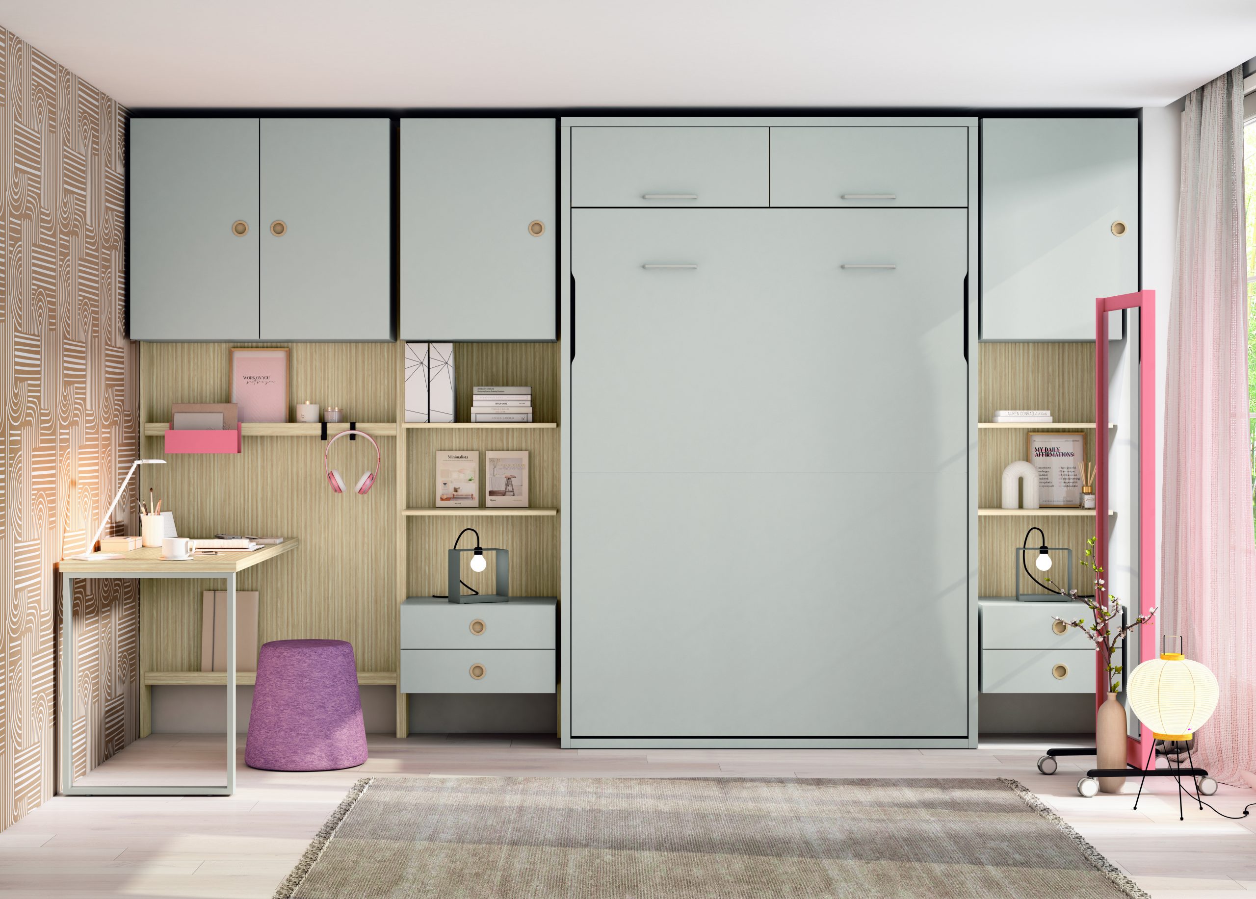 En conclusión, el dormitorio juvenil Ros Delulu 60 es una opción elegante, funcional y adaptable. Su cama vertical con altillo, estanterías modulares y zona de estudio integrada ofrecen una solución completa y moderna para espacios juveniles contemporáneos.