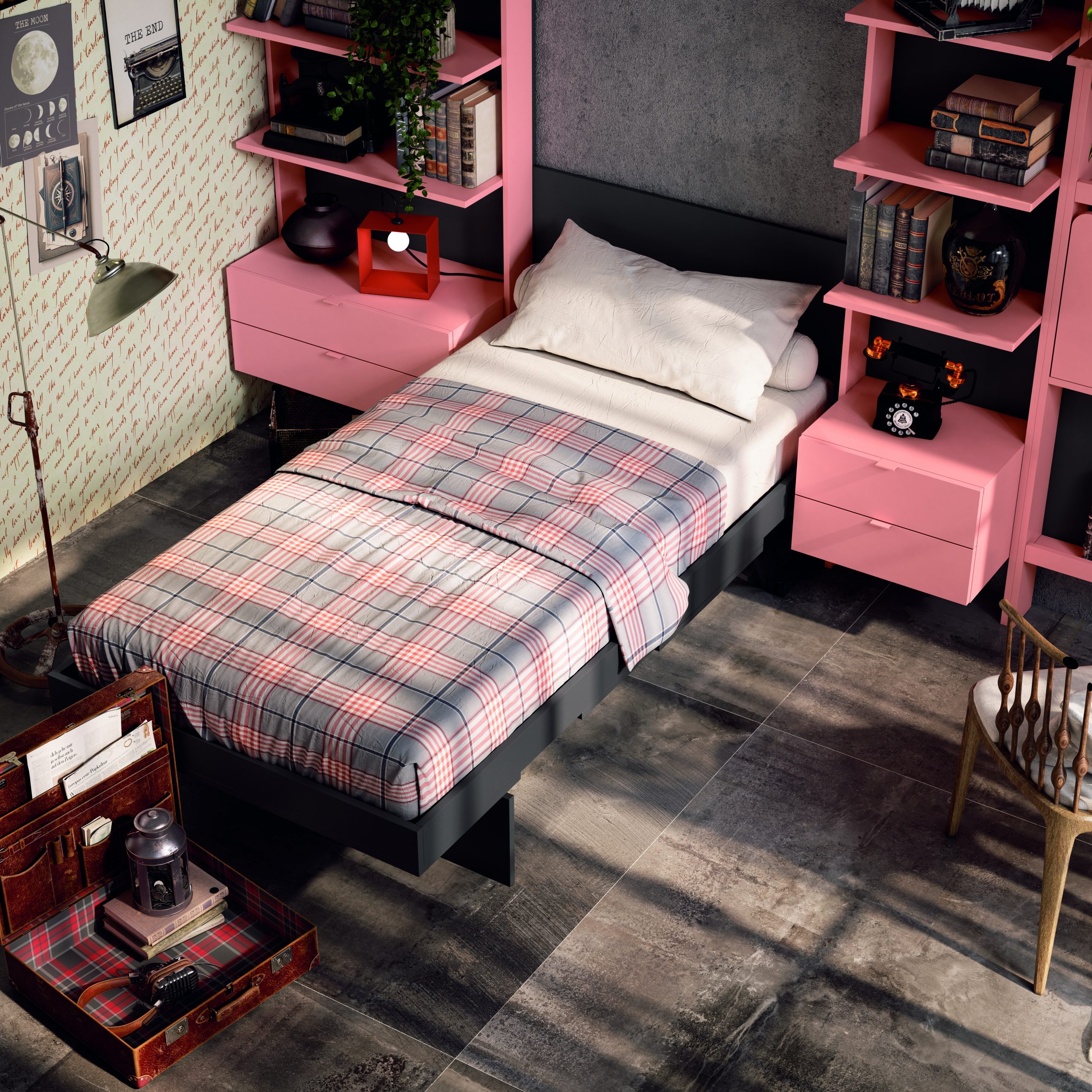 Esta composición ha sido diseñada para aprovechar el espacio sin renunciar al confort ni al diseño, adaptándose a las necesidades de los dormitorios juveniles modernos.