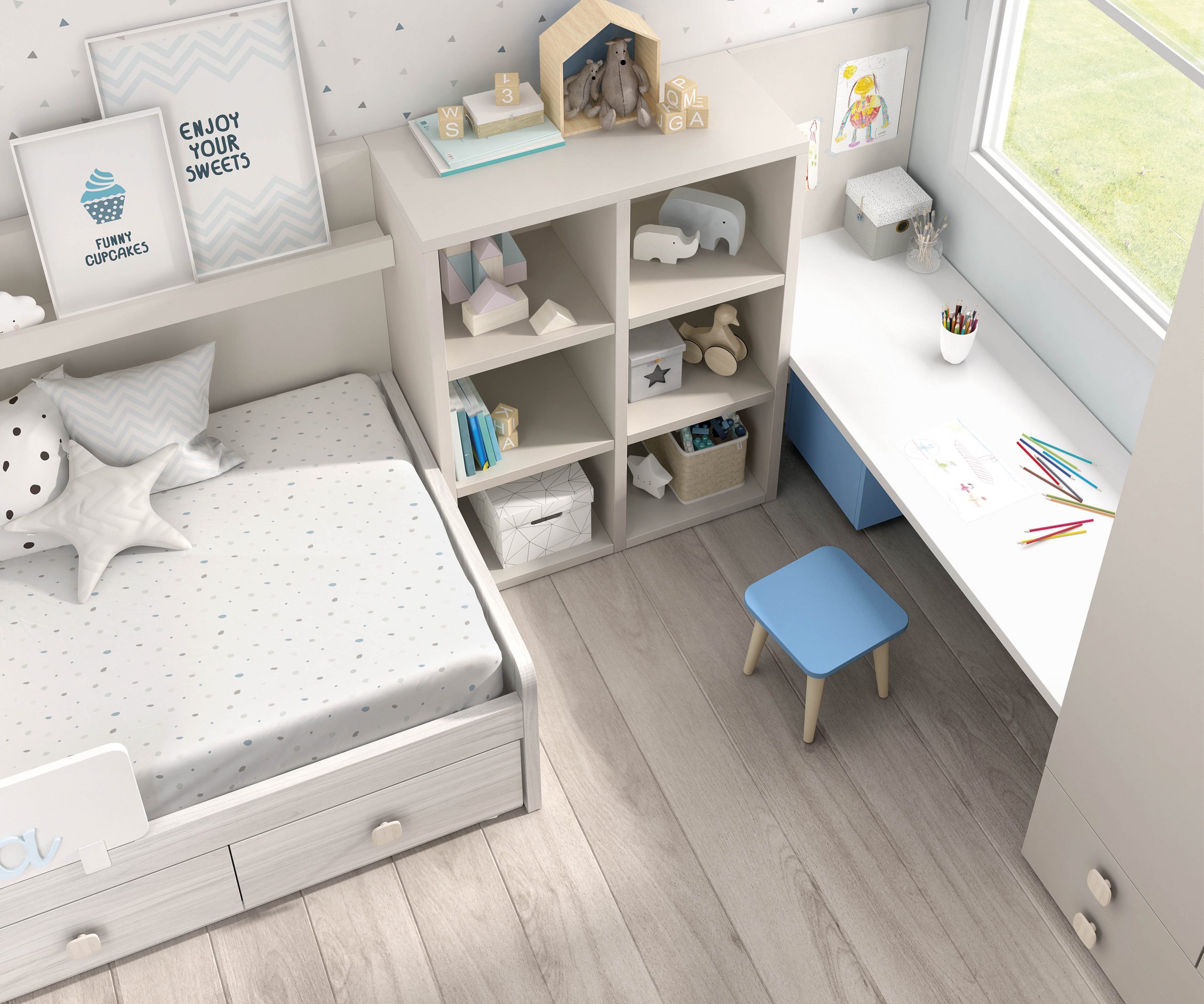 1 Nido y cajonera de 3 cajones de 24,7 -190 x 90