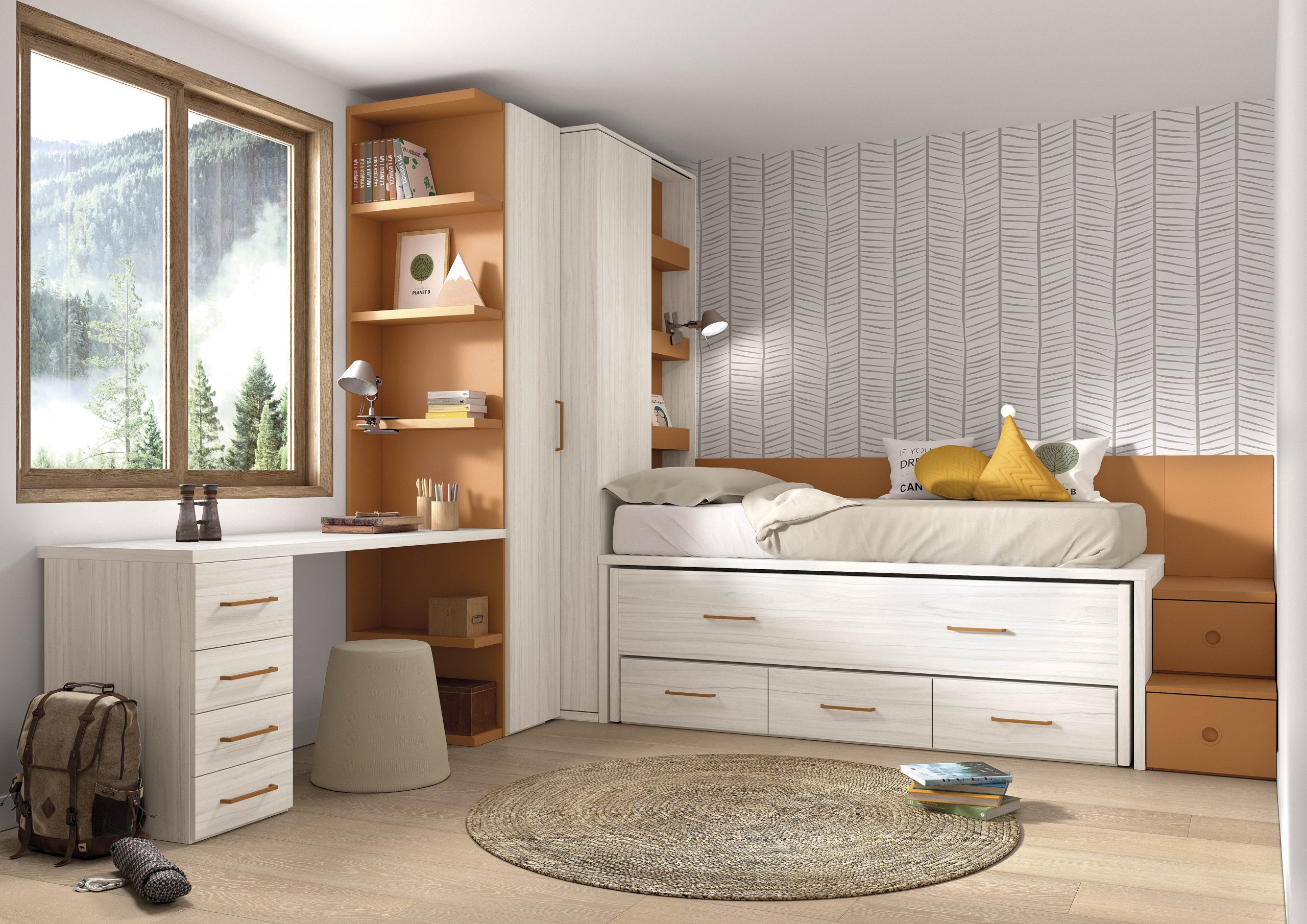 1 UNO – compacta superior, cama deslizable y cajonera de 3 cajones de 24,7 190 x 90 + 180 x 90
