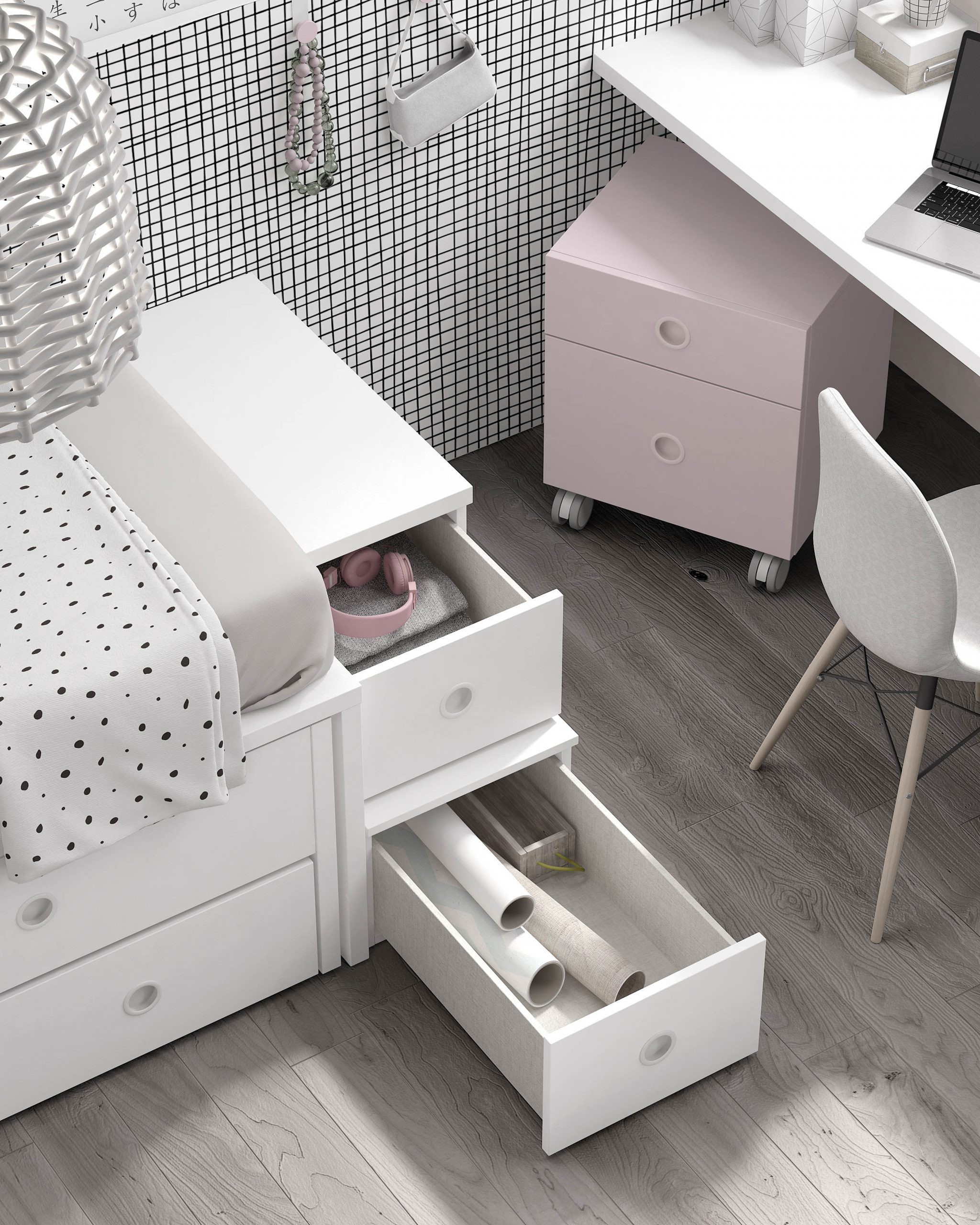 1 UNO compacta superior, cama deslizable y cajonera de 3 cajones de 24,7 190 x 90 + 180 x 90