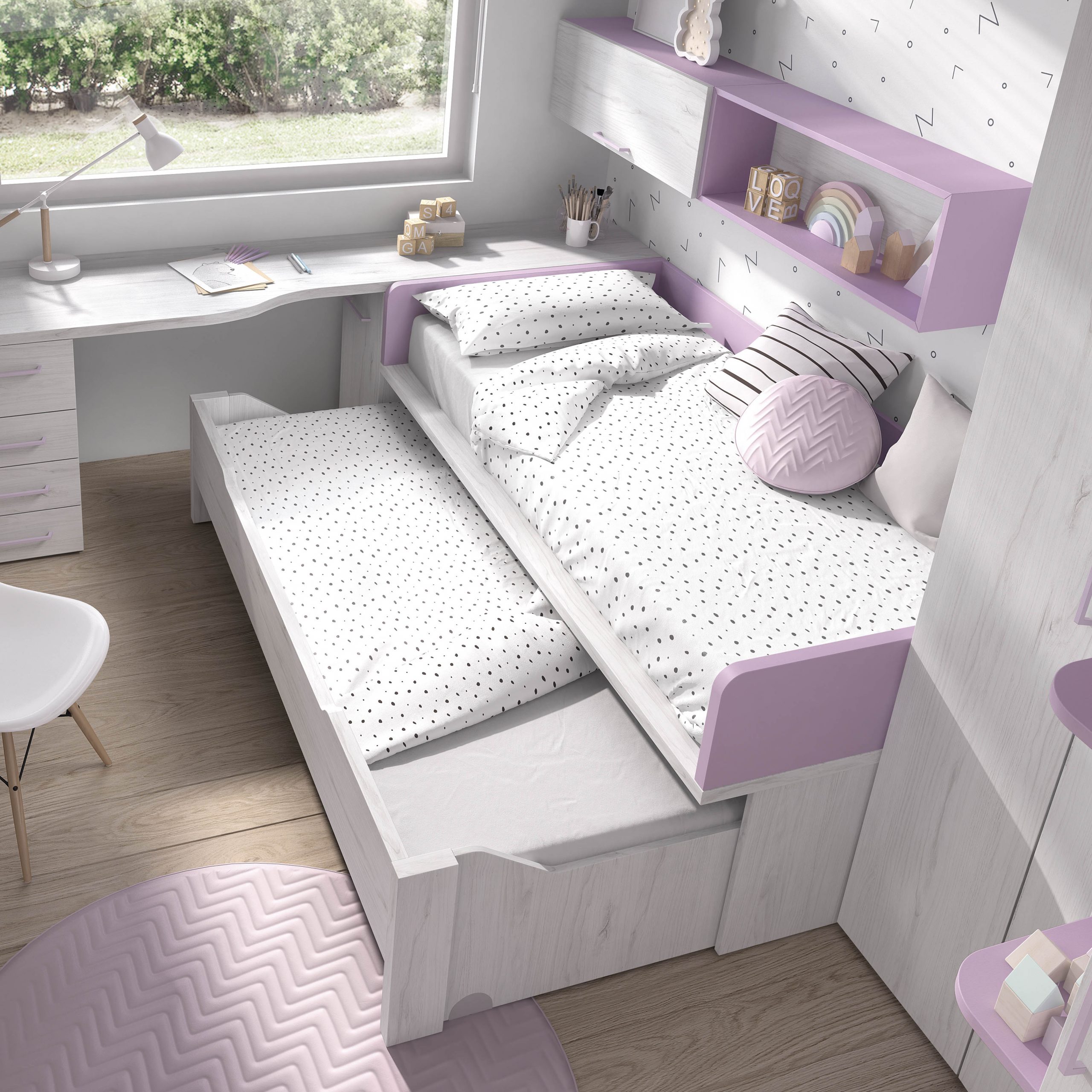 1 Compacta superior, cama deslizable y cajonera con 3 cajones de 16,4 190 x 90 + 190 x 90