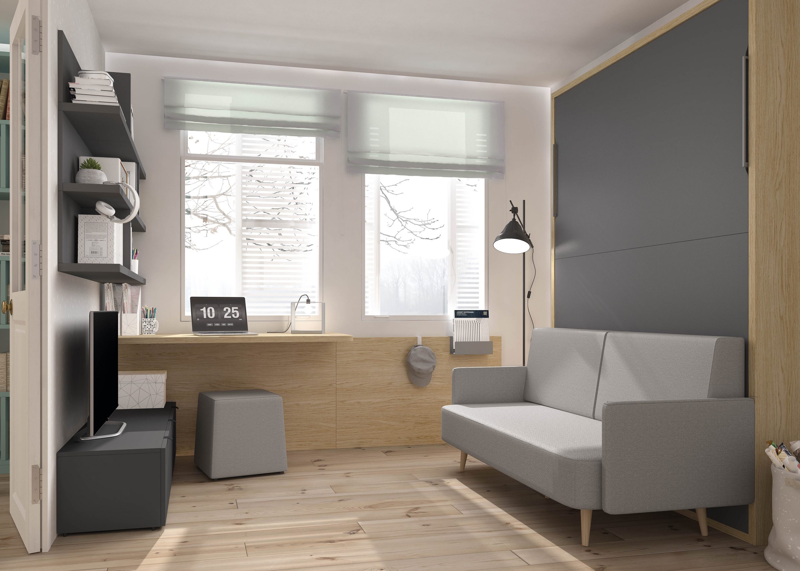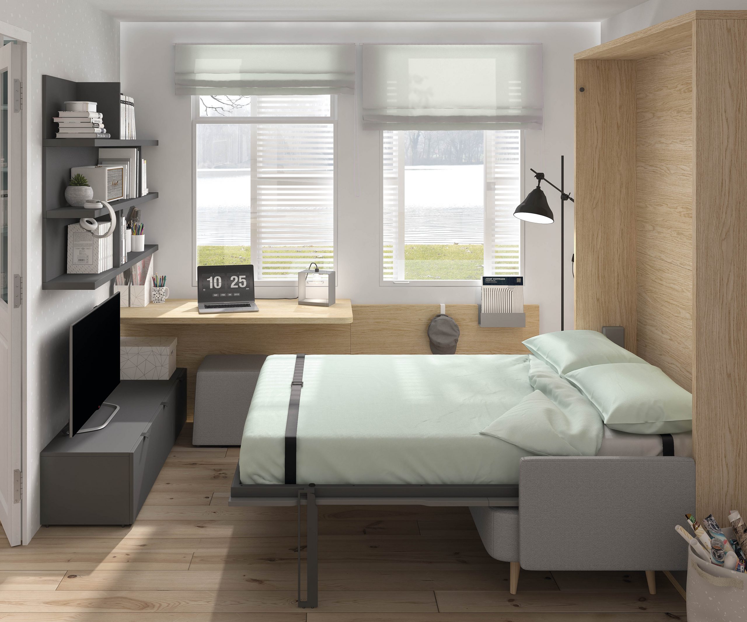 1 Cama vertical simple con sofá nórdico, fondo 36
