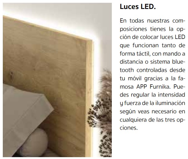 El conjunto está presidido por un cabecero Hole, fabricado en folding, que presenta una combinación perfecta entre Blanco y Grafito. Con unas medidas de 285 x 110 x 12 cm (60-150-60), este cabecero destaca por su diseño de líneas limpias y profundidad visual. Además, puede incorporar una luz opcional con interruptor táctil regulable, que permite ajustar la intensidad según el ambiente deseado, aportando calidez y confort.