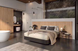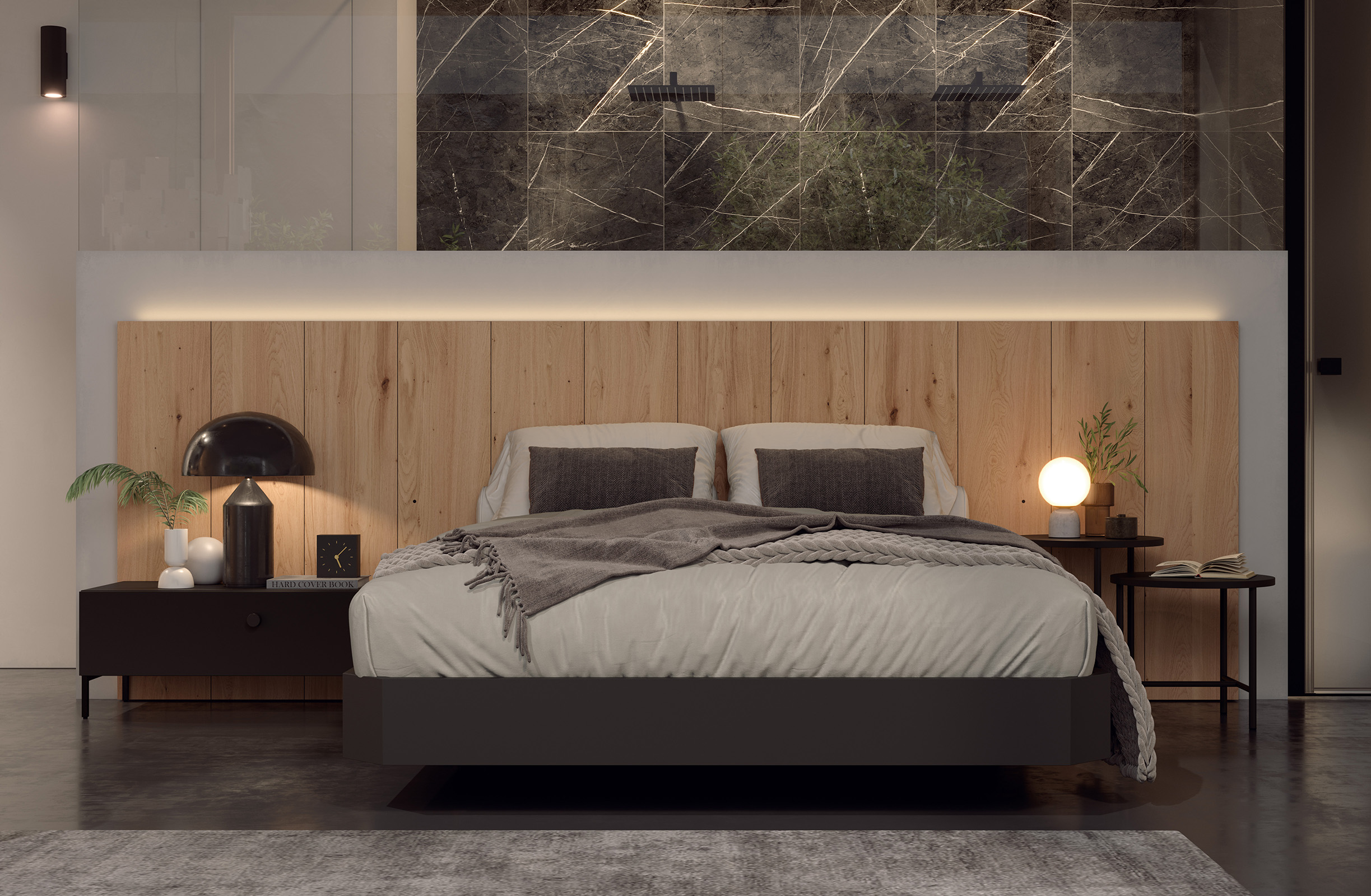El cabecero BCN 50 se forma con varios paneles, de esta manera se pueden combinar entre 25 colores disponibles. También se puede incorporar iluminación led en toda su longitud.