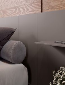 Composición dormitorio principal que juego en el frente con una mesilla y un Xinfonier dando un aspecto diferente y moderno.