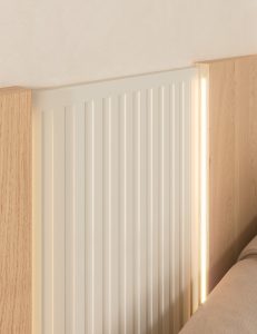 Puedes personalizar tu cabecero Palma 50 con el relieve Rejilla o Mapa. Con la opción de iluminación led, resaltamos la zona central y el
