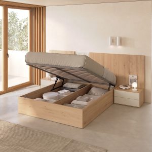 Detalle de la bañera ingletada con somier elevable, una solución para aprovechar el espacio de tu dormitorio.