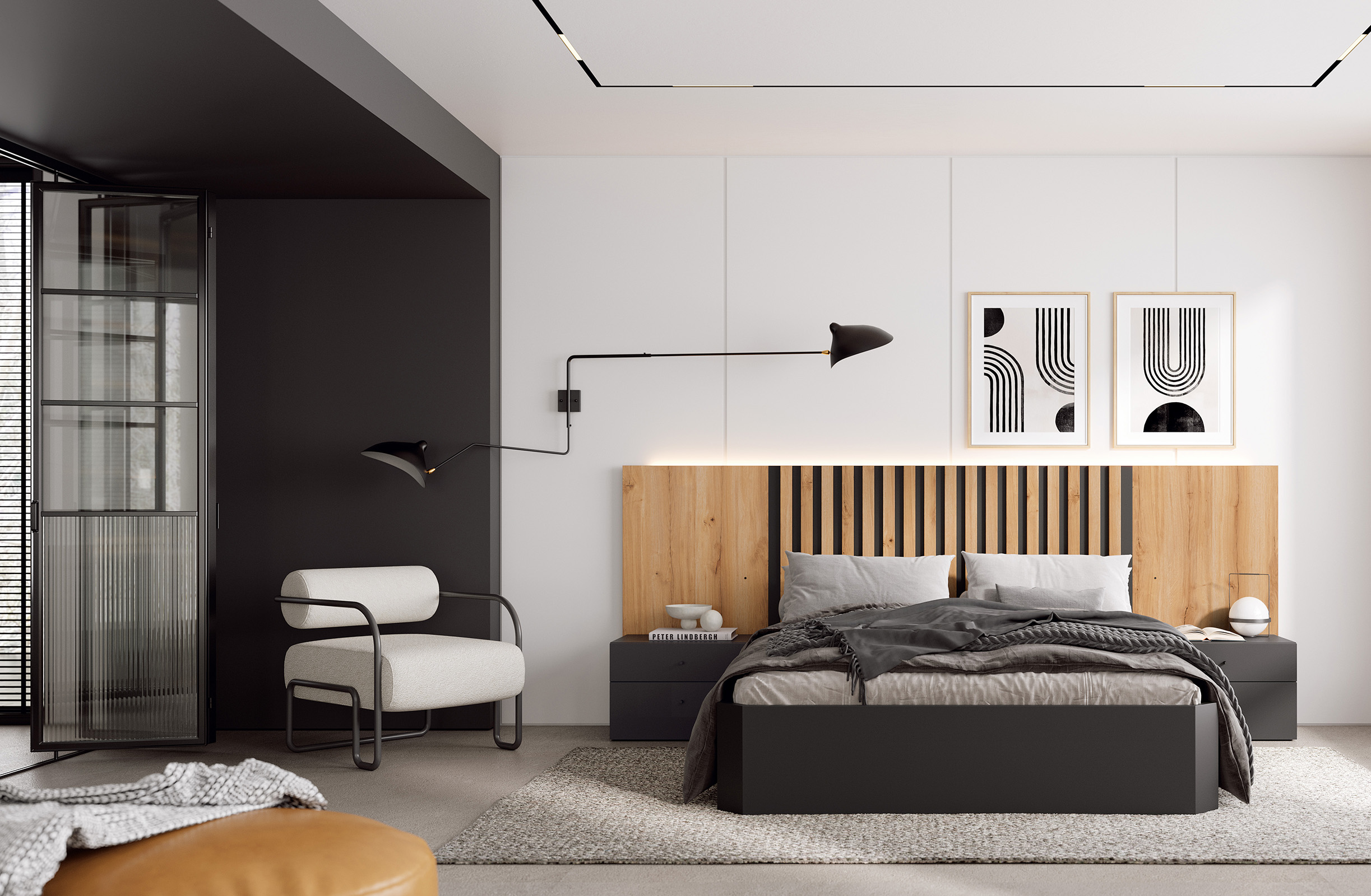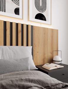 Con el cabecero Ribbon 60 podemos combinar de diferente color el panel trasero y los listones delanteros.