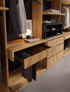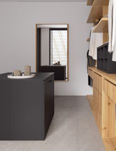Completa tu vestidor con una isla central de cajones para aquellas prendas que necesitas que estén ocultas a la vista.