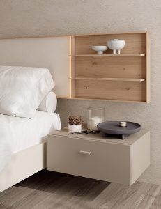 El cabecero Persia 80 colgado se puede personalizar con estantes decorativos.