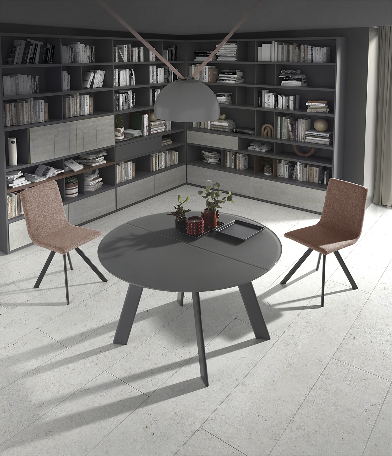 Mesa comedor modelo Moonlight extensible con estructura Piedra y tapa Piedra Mate.