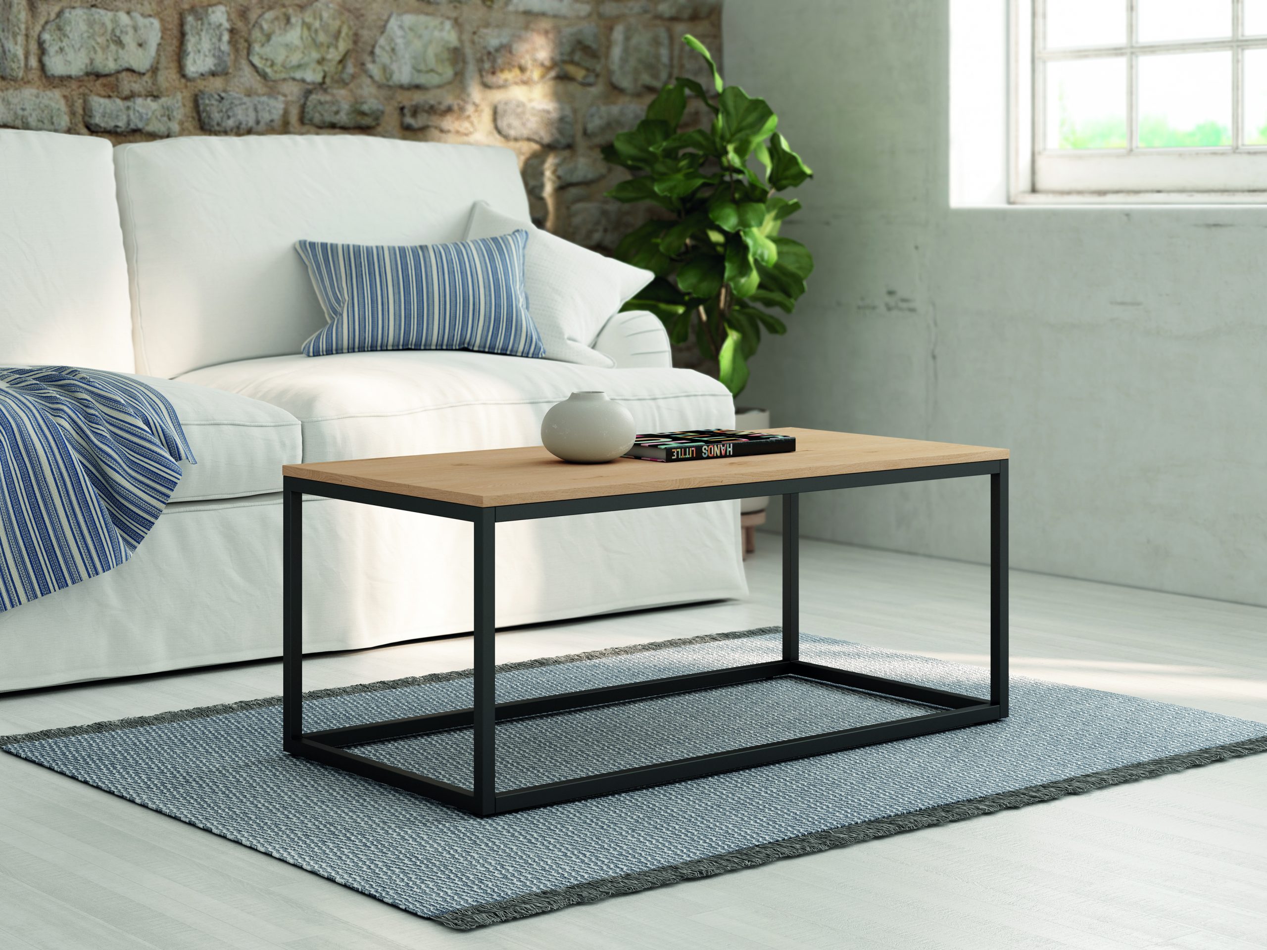 Mesa de centro rectangular con estructura metálica marfil o negra.