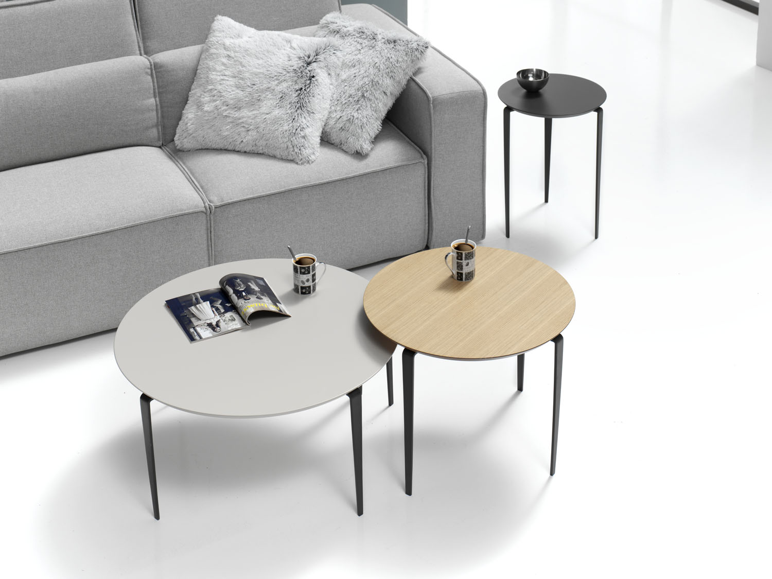 Mesa redonda con tapa color ocre y patas texturizada Negro