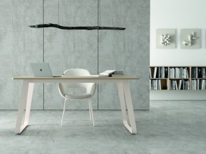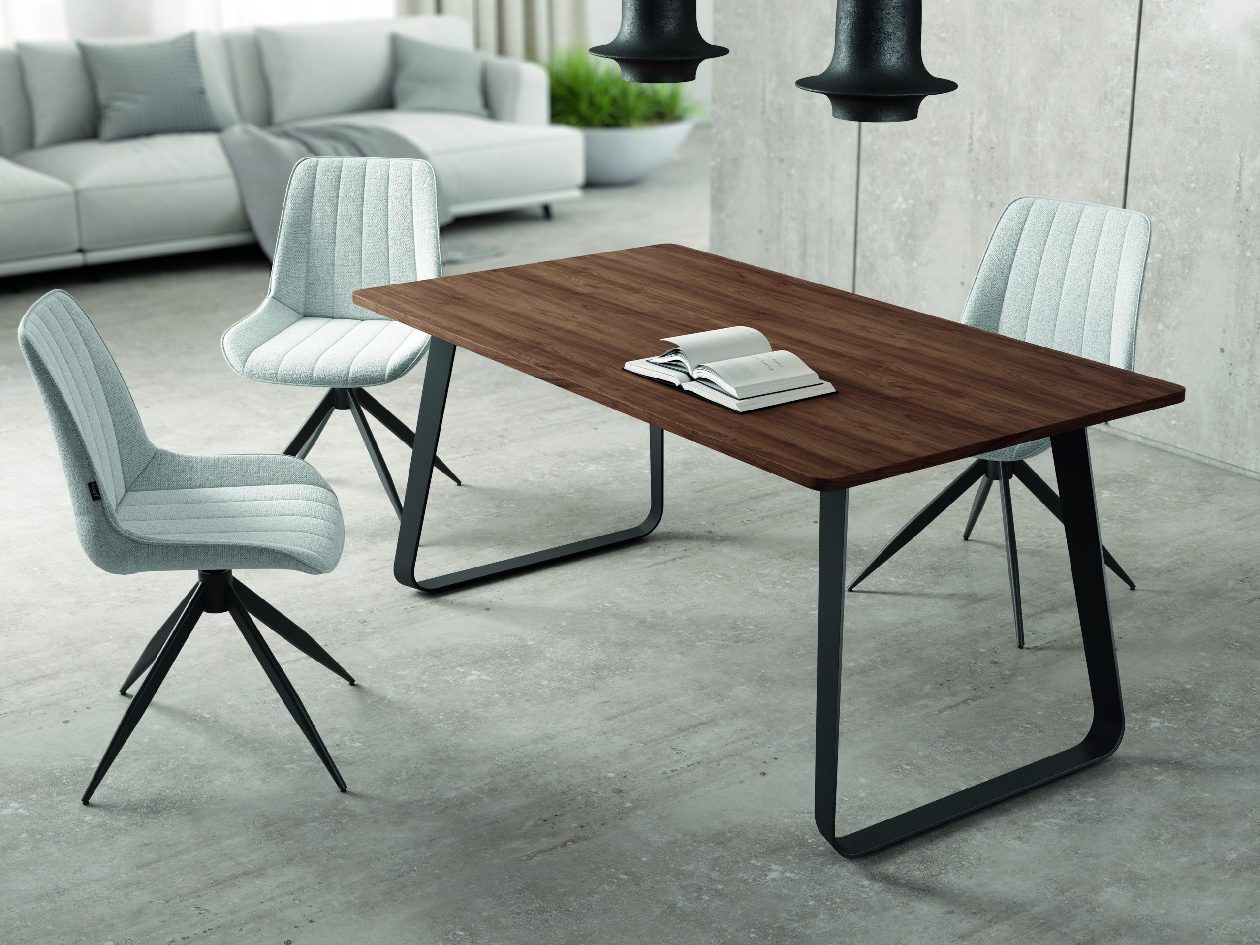 Mesa de comedor fija con estructura metálica marfil o negra.